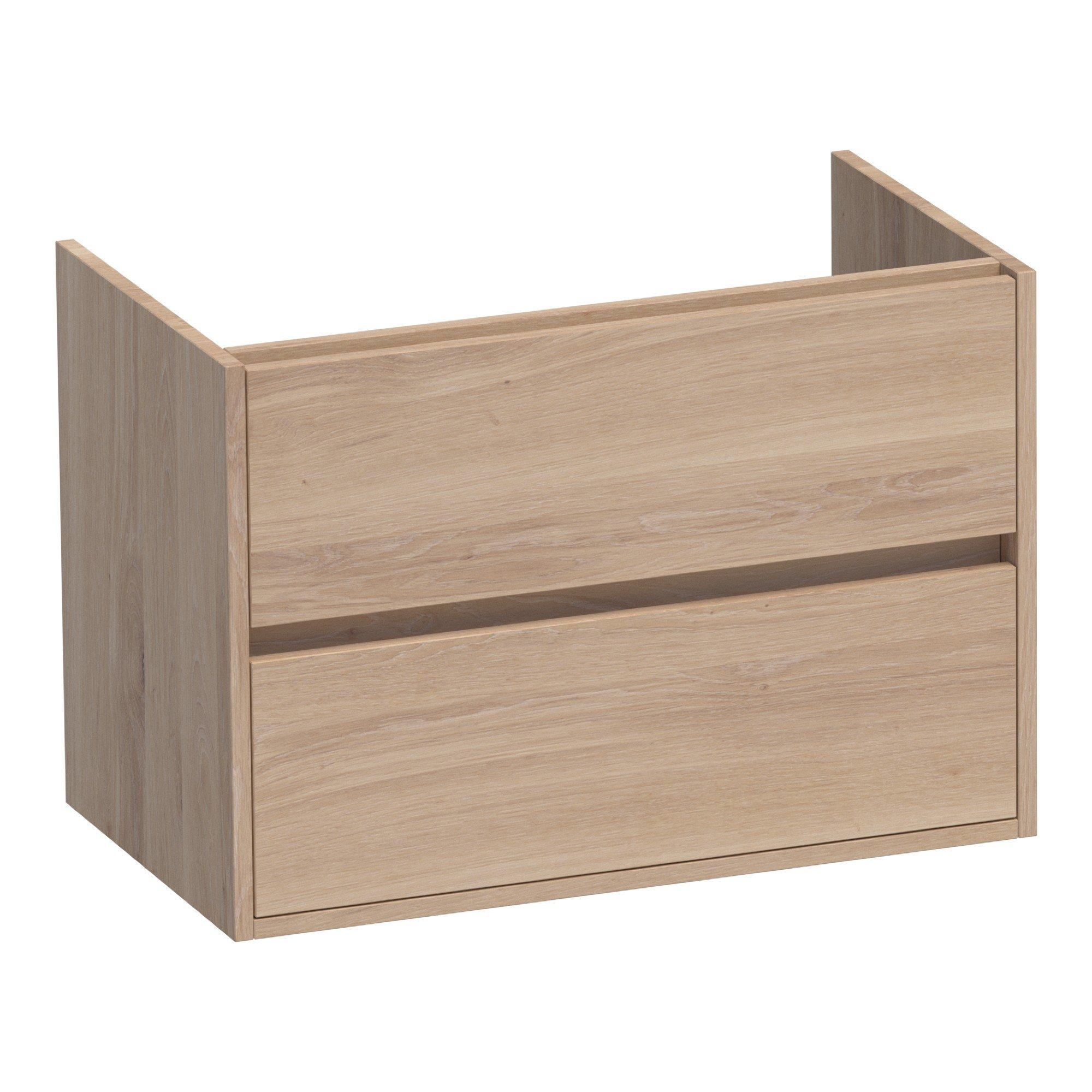 BRAUER Adore wastafelonderkast - 80x46x55cm - 2 softclose lades - greeploos - 1 sifon uitsparing - massief eiken - lamellen eiken naturel