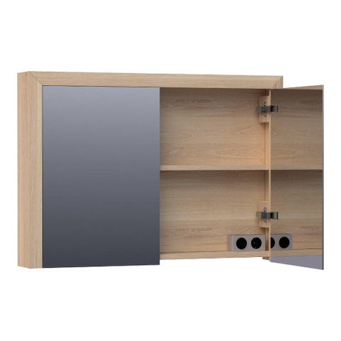 BRAUER Rise spiegelkast - 100x70x15cm - zonder verlichting - 2 dubbelzijdige spiegeldeuren - lamellen eiken naturel