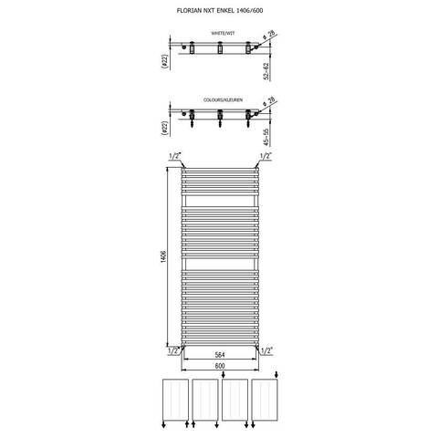 Plieger Florian Nxt designradiator enkel horizontaal 1406x600mm 881W mat zwart