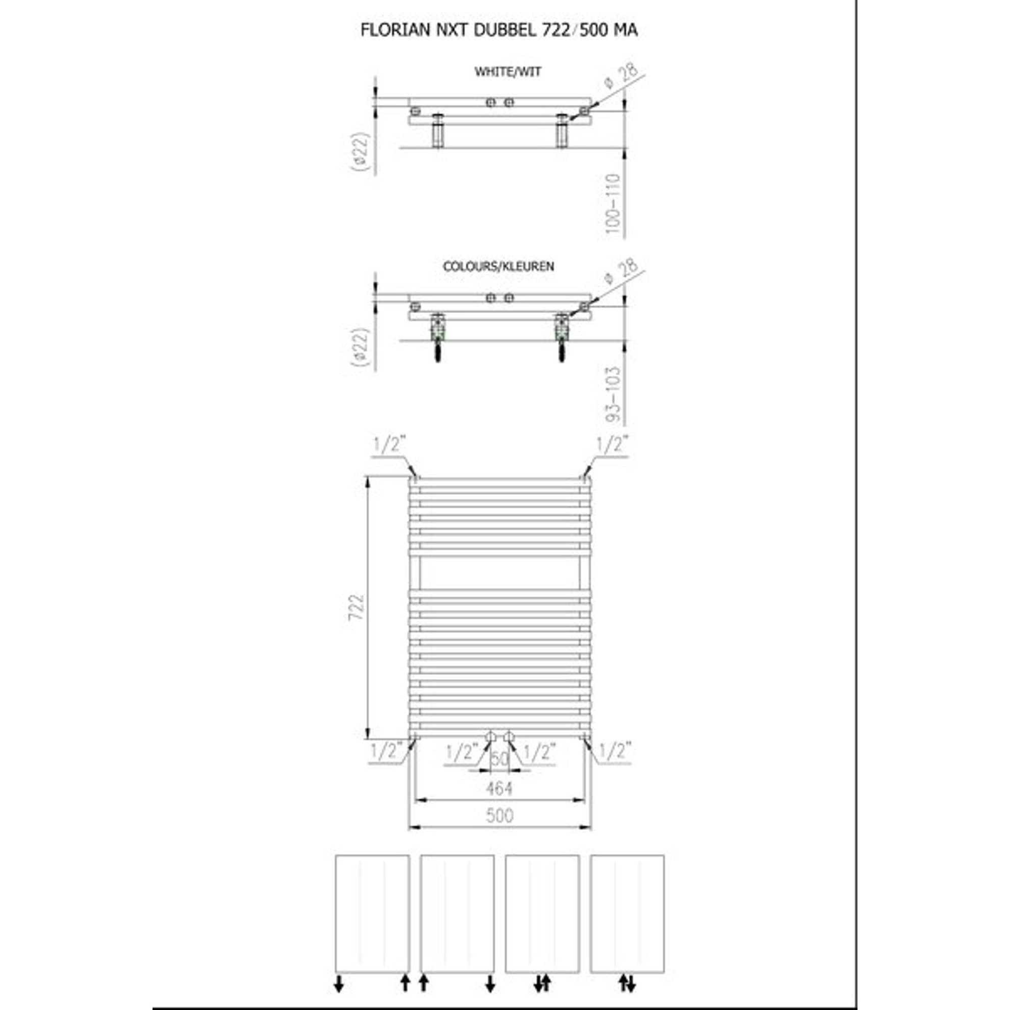 Plieger Florian Nxt M designradiator dubbel horizontaal met middenaansluiting 722x500mm 505W mat zwart