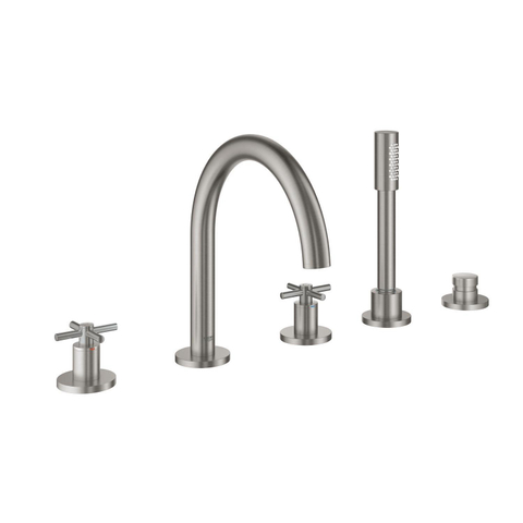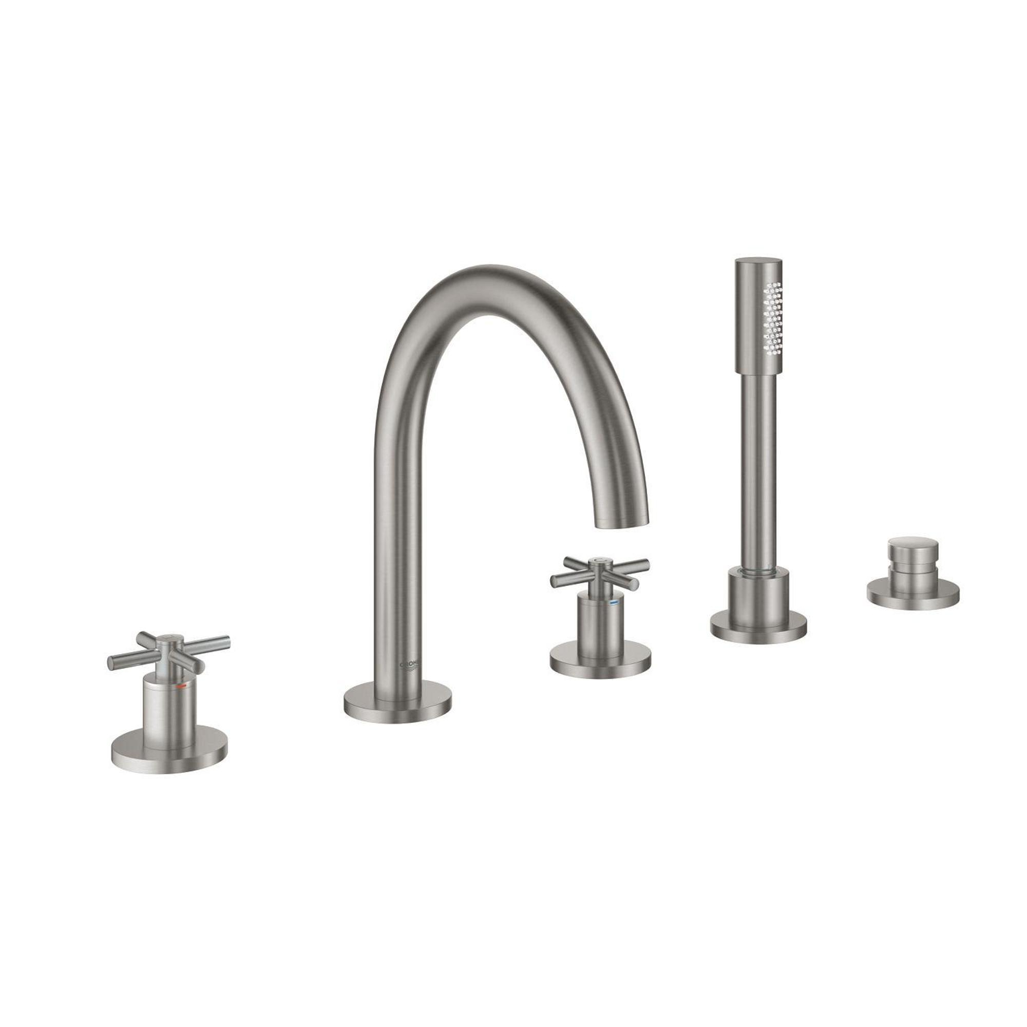 GROHE Atrio afbouwdeel 5-gats badrandcombinatie met omstel met handdouche met doucheslang 200cm met kruisgrepen supersteel