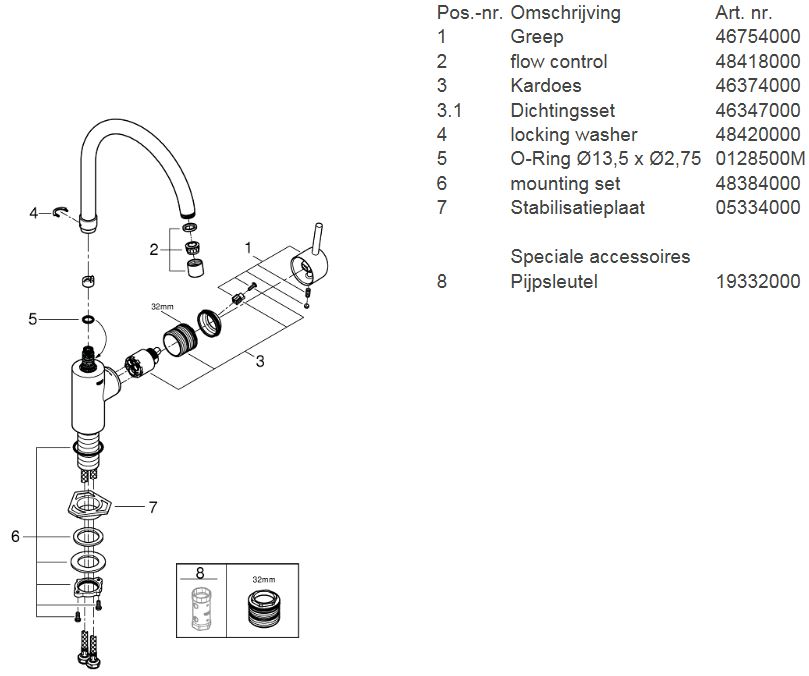 GROHE SilkMove 35 mm kardoes met keramische schijven