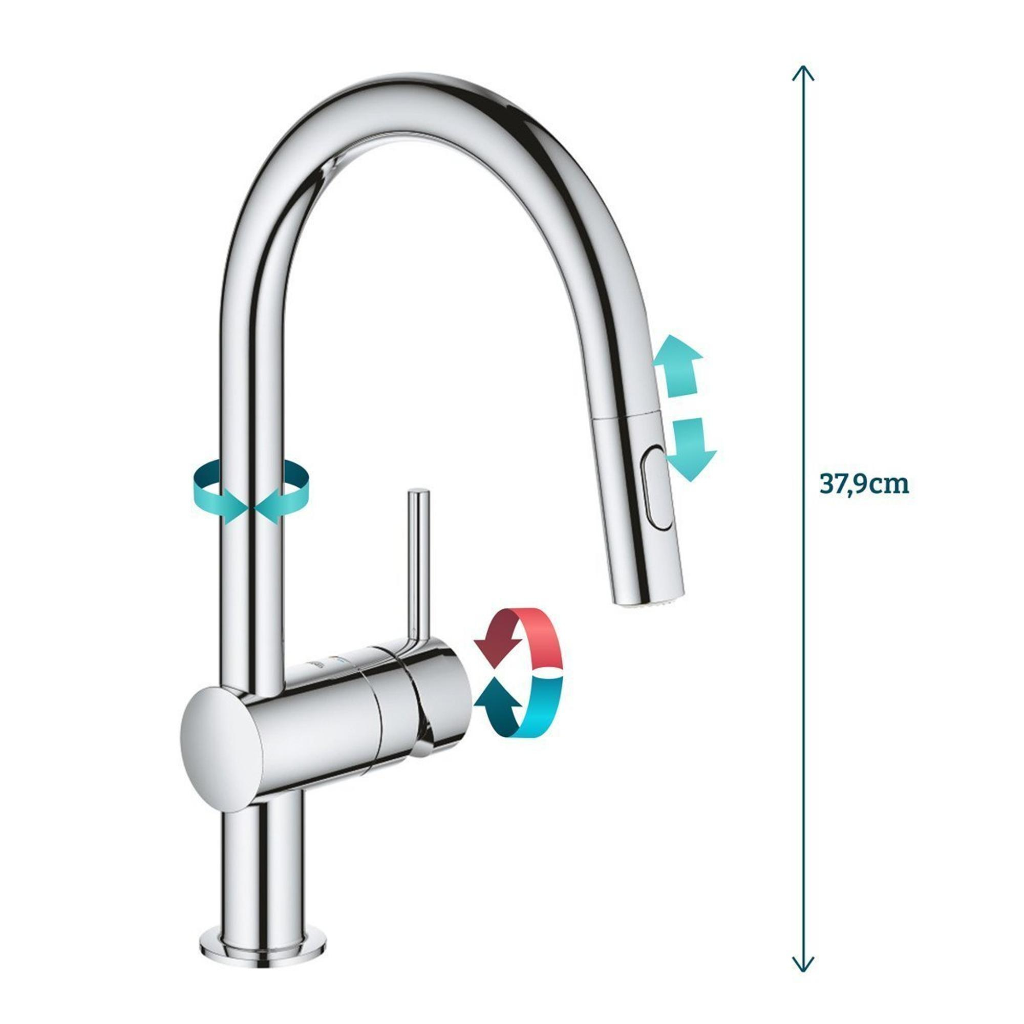 GROHE Minta Keukenkraan - hoog - draaibare/uittrekbare uitloop - 2 straalsoorten - chroom