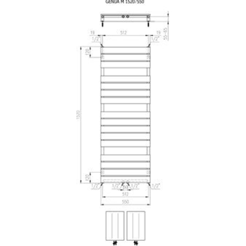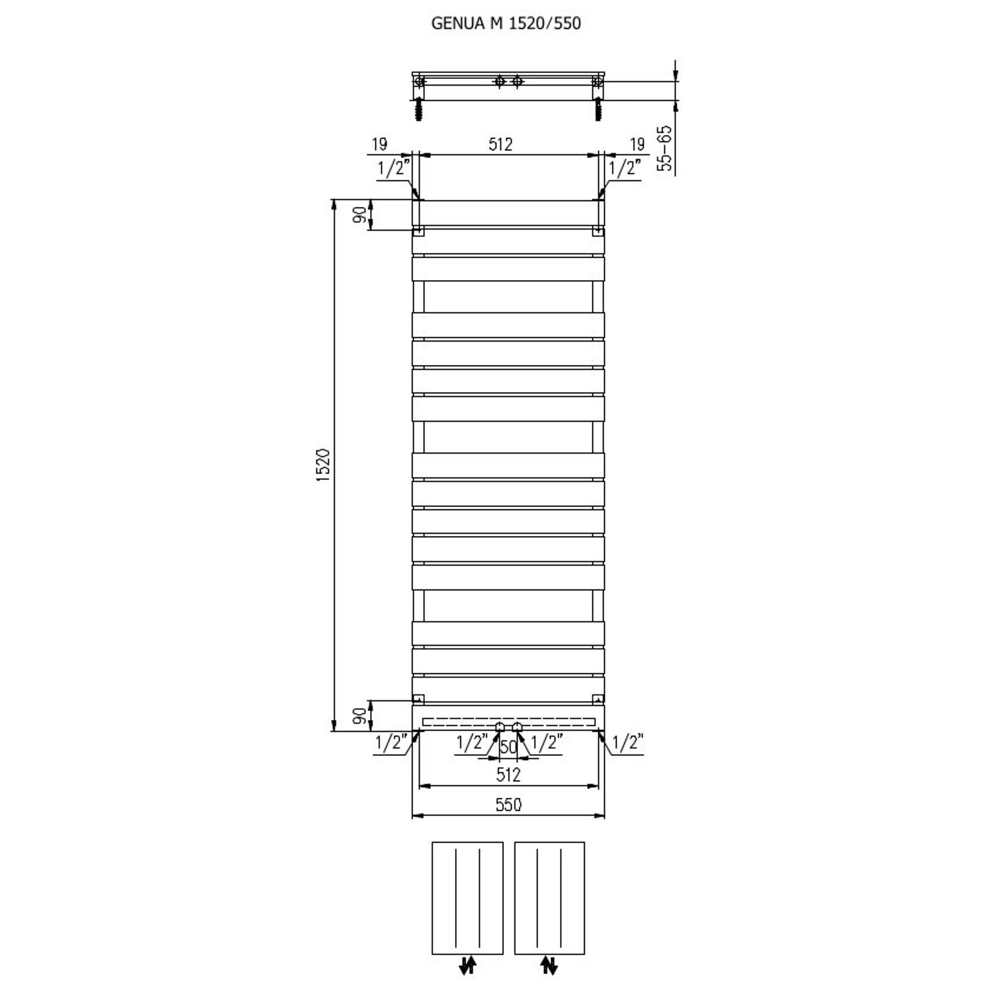 Plieger Genua M designradiator horizontaal middenaansluiting 1520x550mm 800W wit