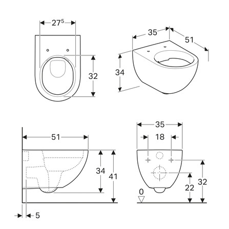 Het wandcloset heeft een diepte (sprong) van 51cm en is geschikt voor spoelingen met 4,5 of 6 liter water.