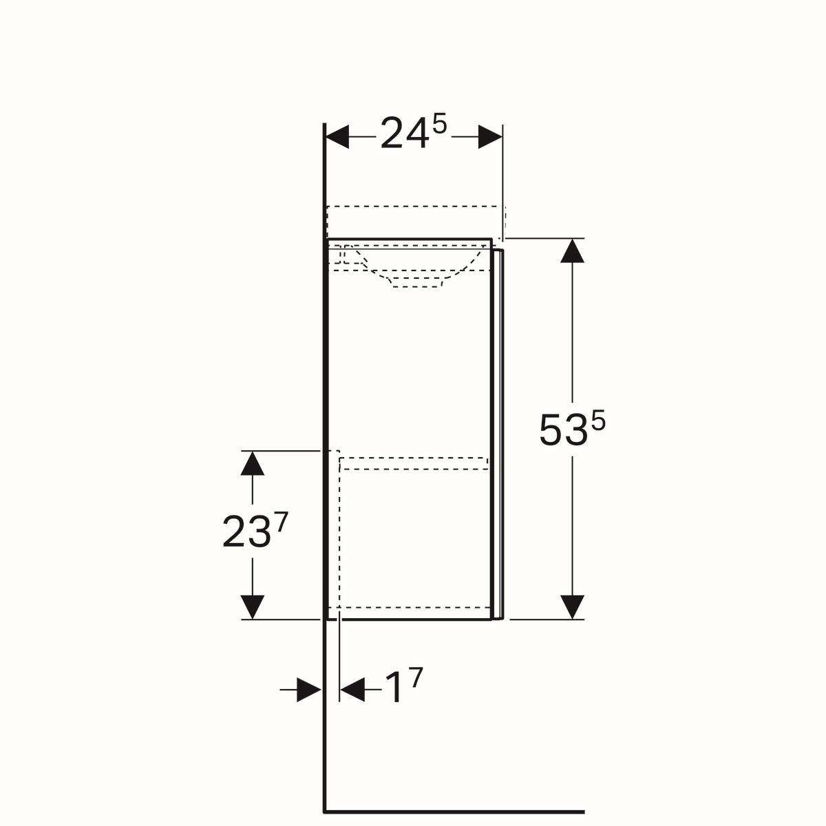 De onderkast is 534mm hoog, 396mm breed en 246mm diep.