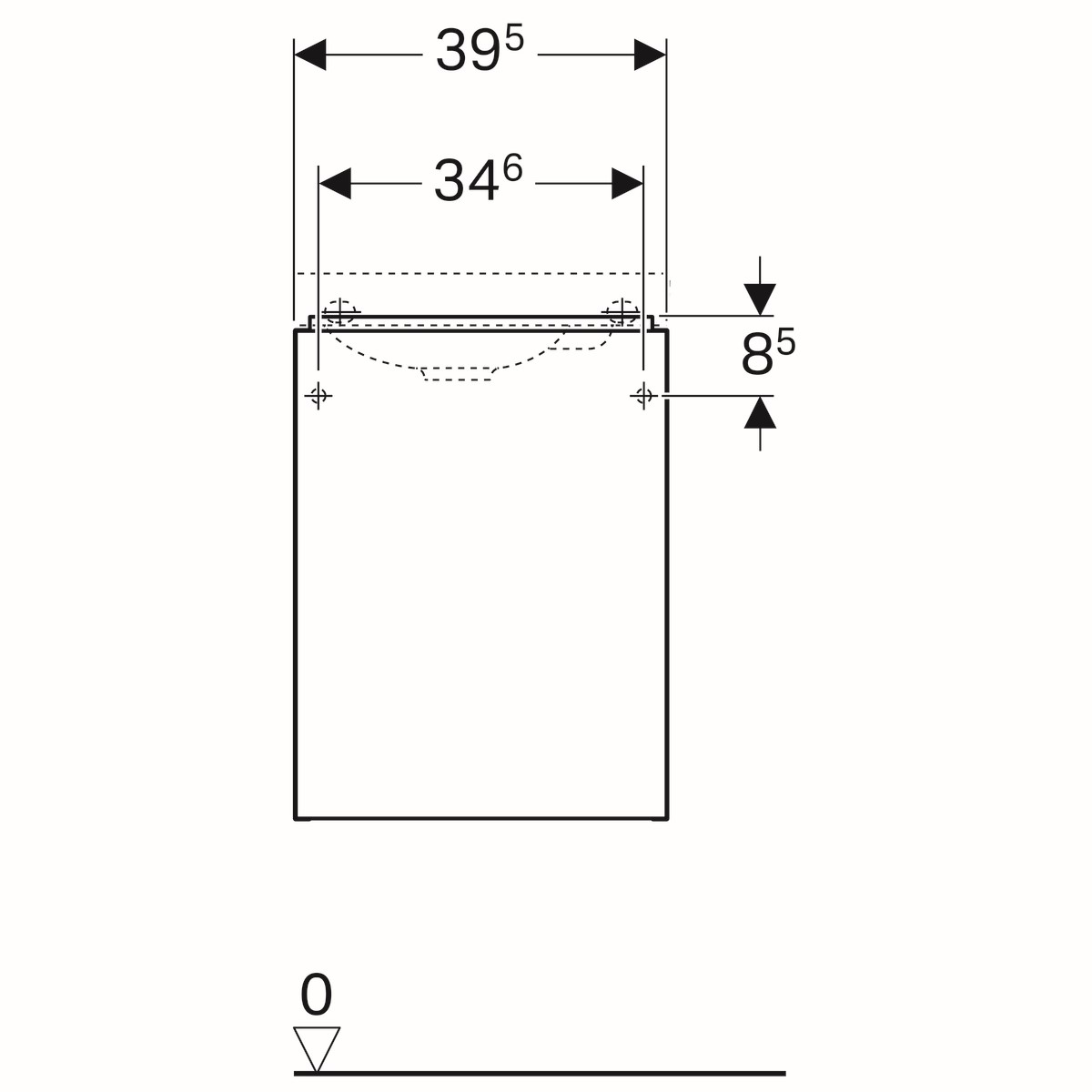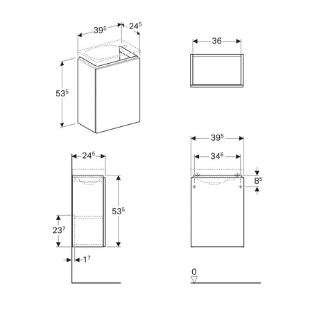 Geberit Acanto fonteinonderkast 396 x 534 x 246 mm corpus mat zand front zand glas zonder kraanwerk zonder wastafel