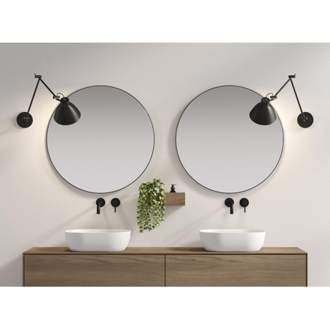 Deze spiegel straalt een moderne en strakke uitstraling uit dankzij zijn ronde vorm en de zwarte lijn die het omlijst. Het minimalistische ontwerp zorgt voor een eigentijdse look die perfect past bij een trendy badkamer. De combinatie van hoogwaardige materialen en vakmanschap zorgt ervoor dat deze spiegel niet alleen mooi is om naar te kijken, maar ook duurzaam en functioneel is.