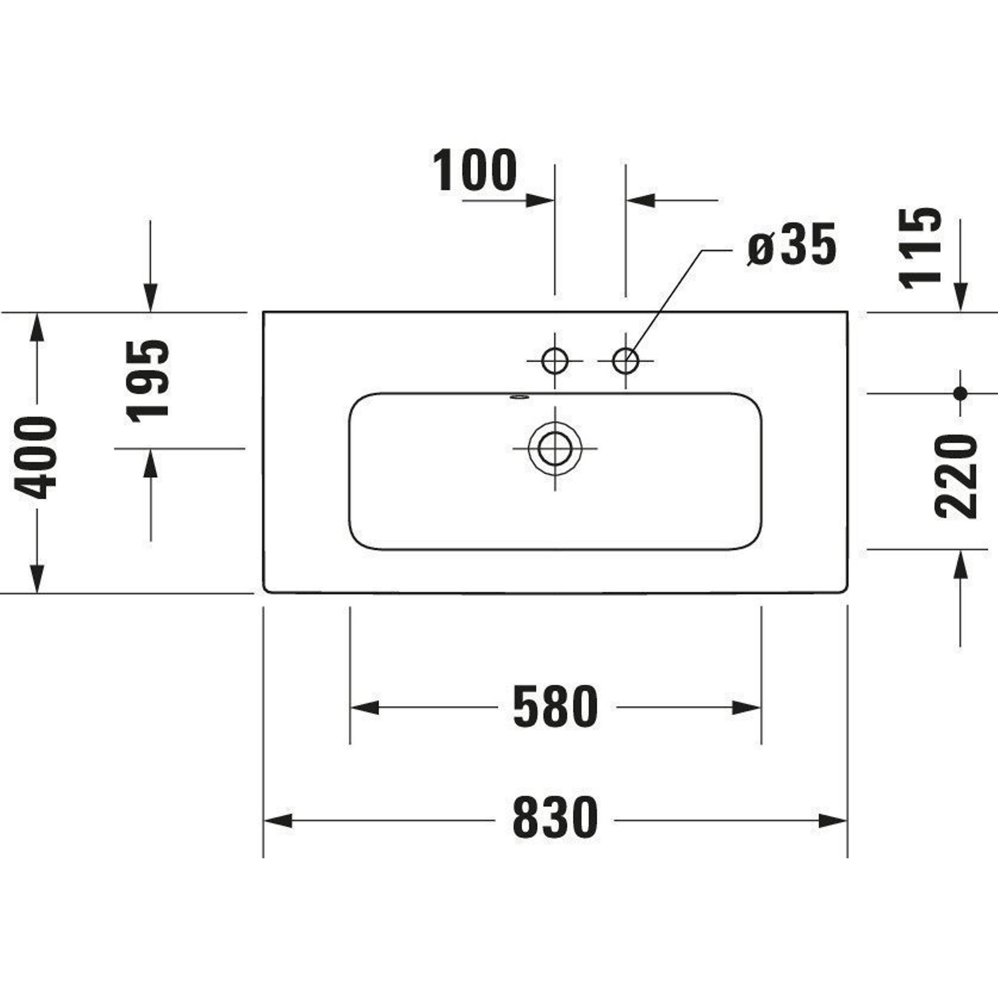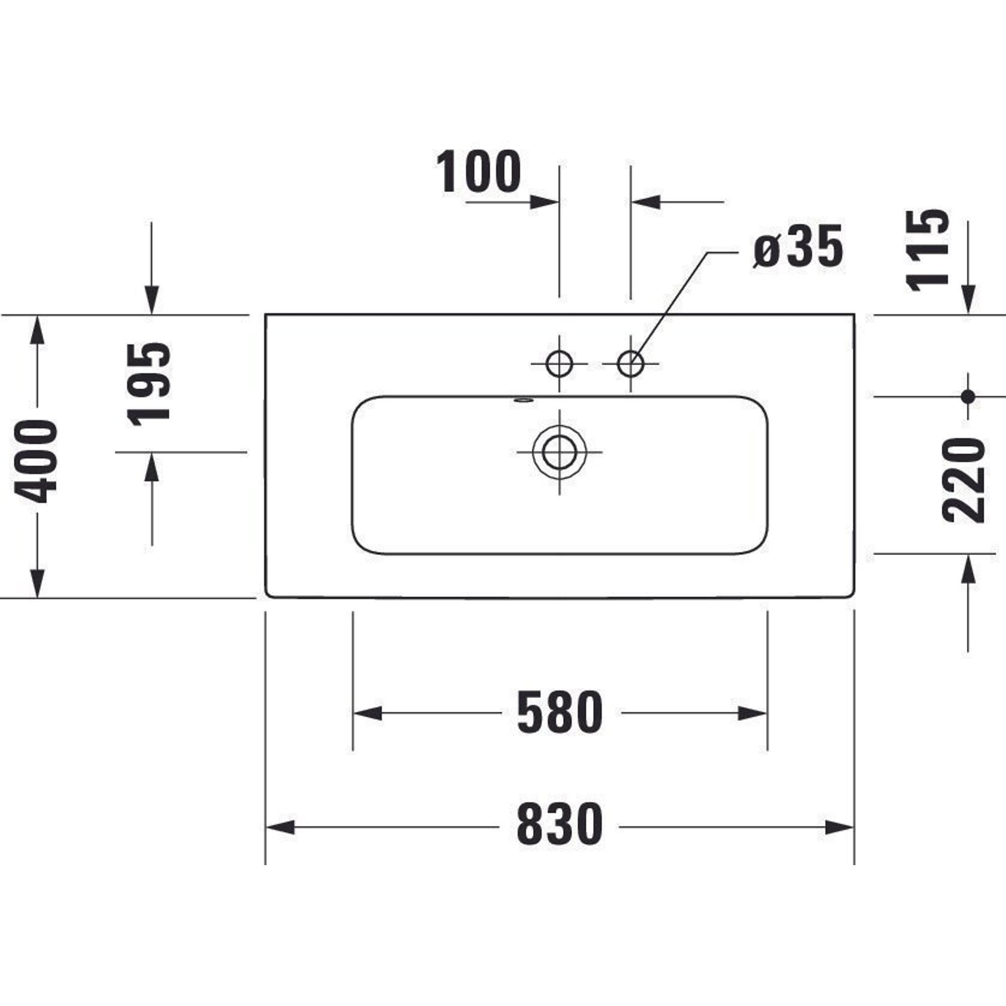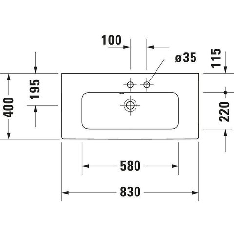 Duravit Me by starck wastafel 83x40cm 1 kraangat overloop wit