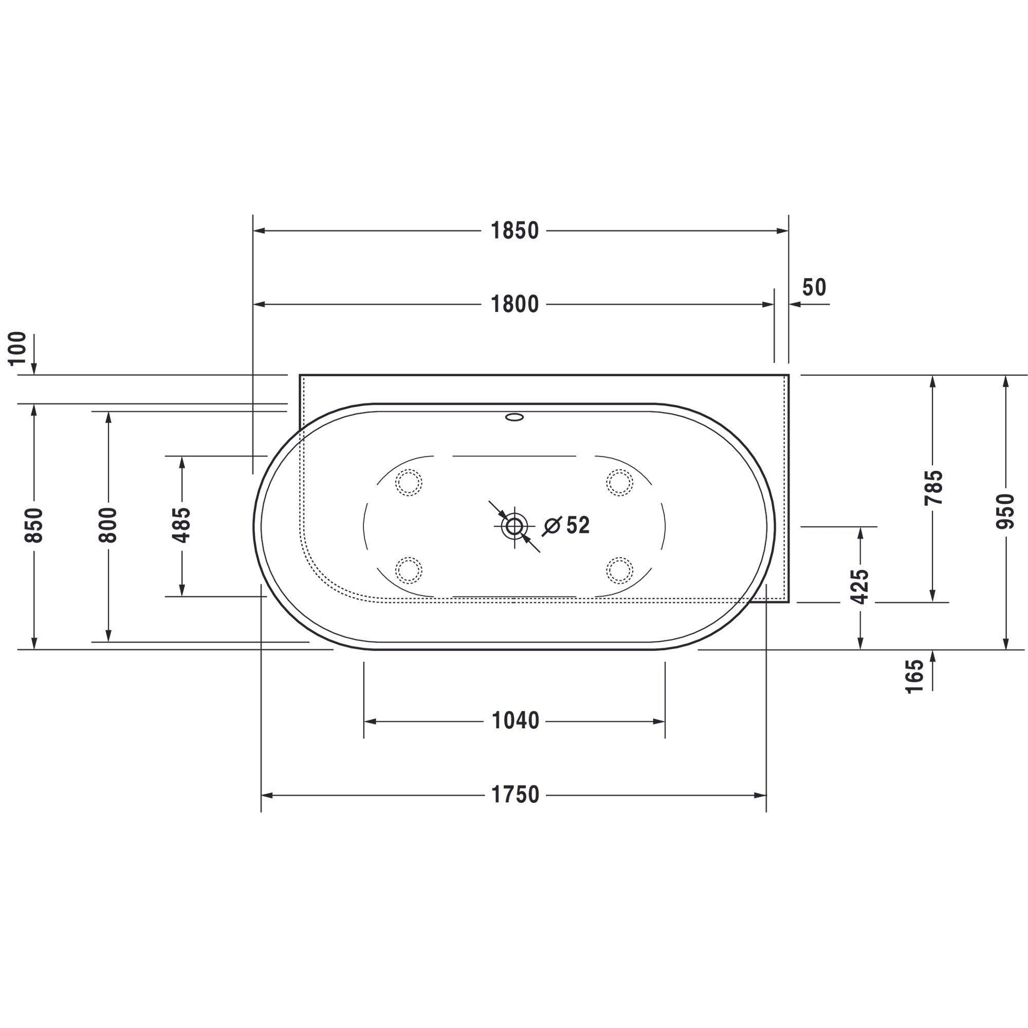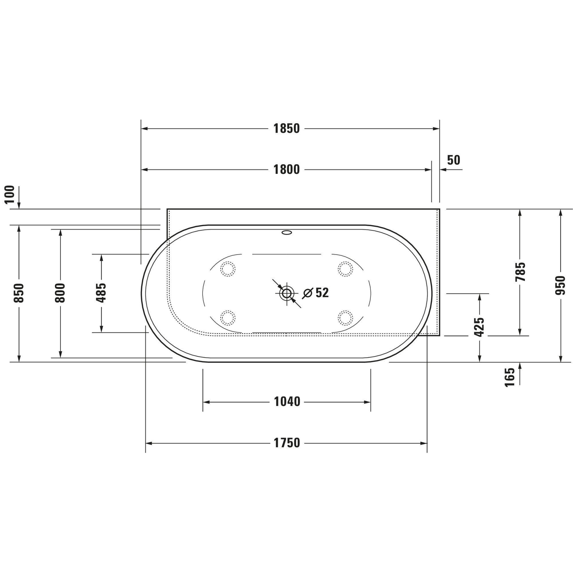 Duravit Luv bad ovaal 185x95cm hoek rechts mat wit