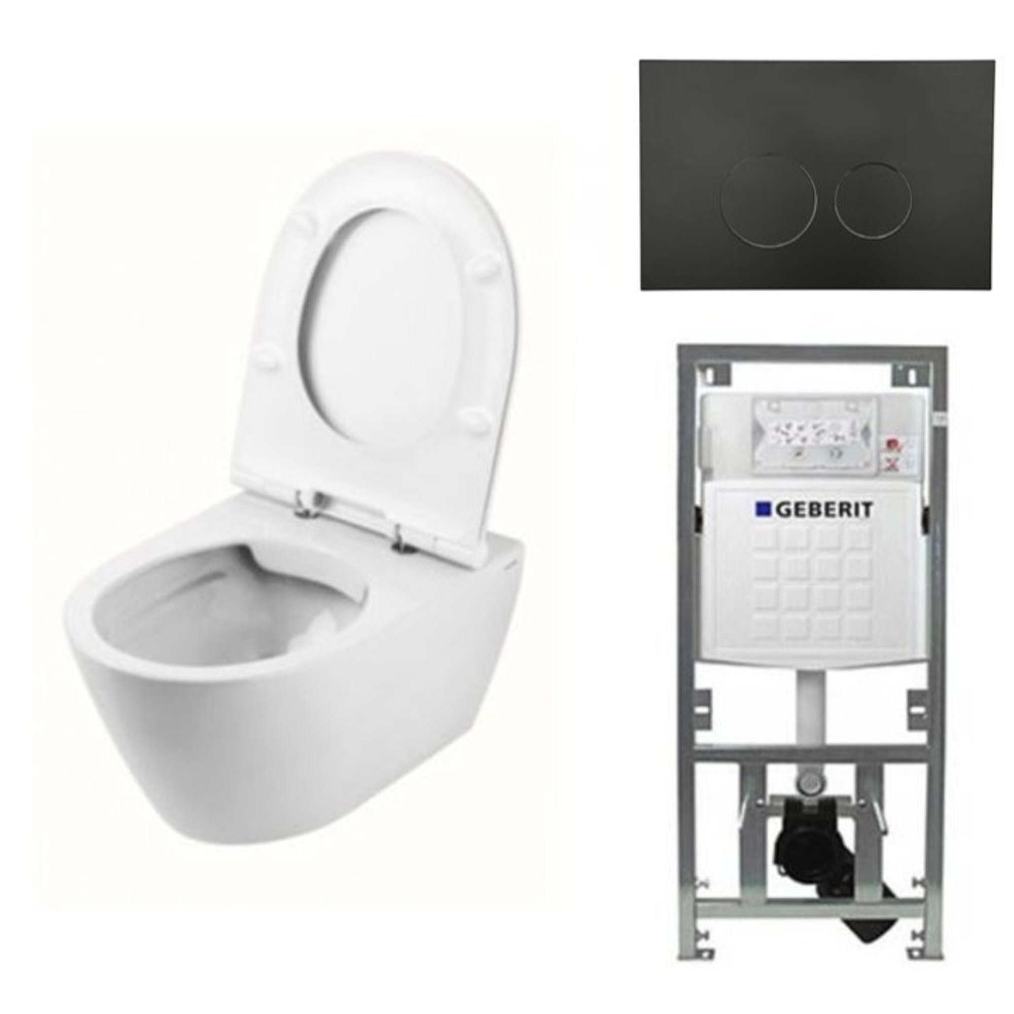 QeramiQ Salina Spoelrandloos toiletset inclusief toiletzitting, inbouwreservoir en mat zwart bedieningspaneel