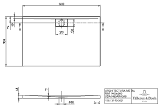 Villeroy & Boch Architectura Metalrim kunststof douchebak acryl rechthoekig 140x90x4.8cm mat wit