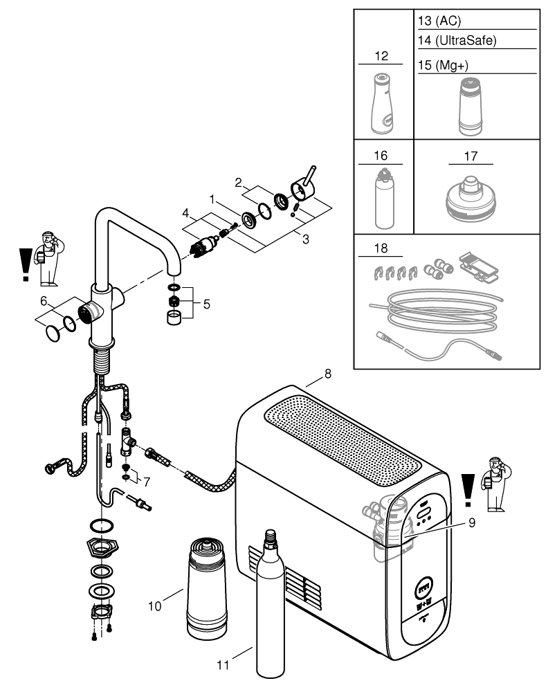 instelbaar voor GROHE Blue filter S-Size, M-Size, GROHE Blue actiefkoolfilter, GROHE Blue Ultrasafe filter en GROHE Blue magnesium+ filter