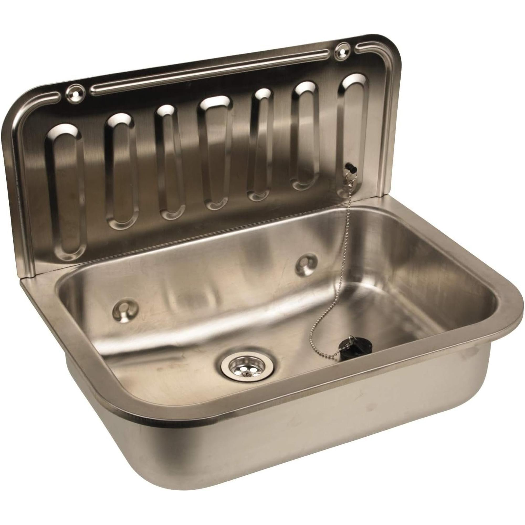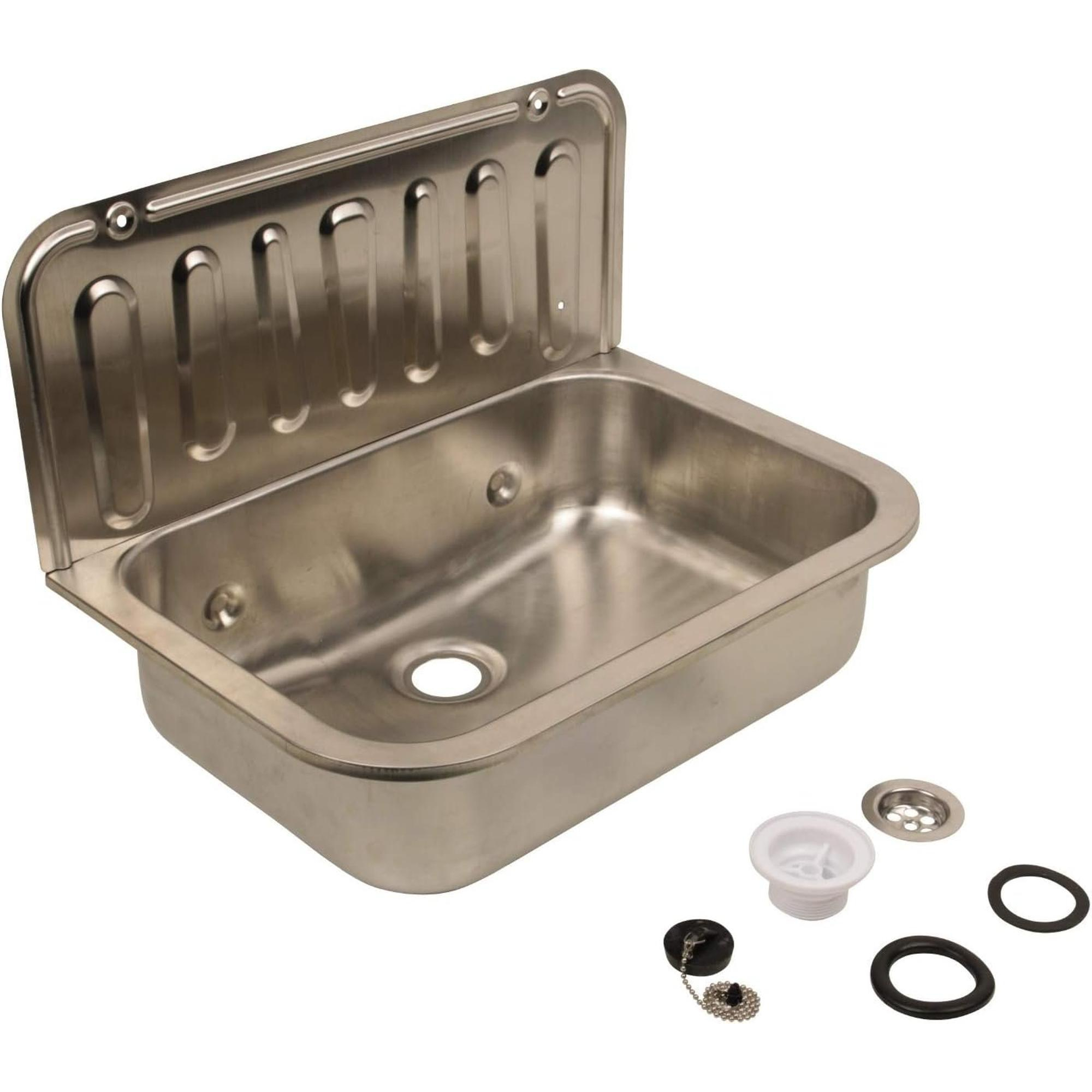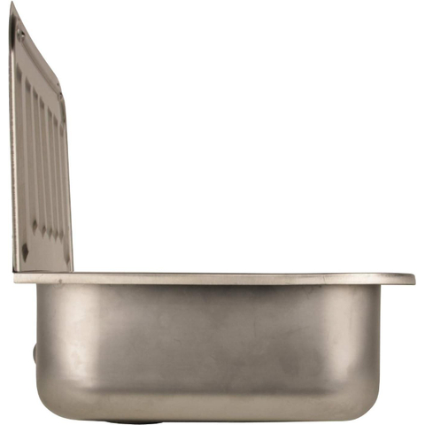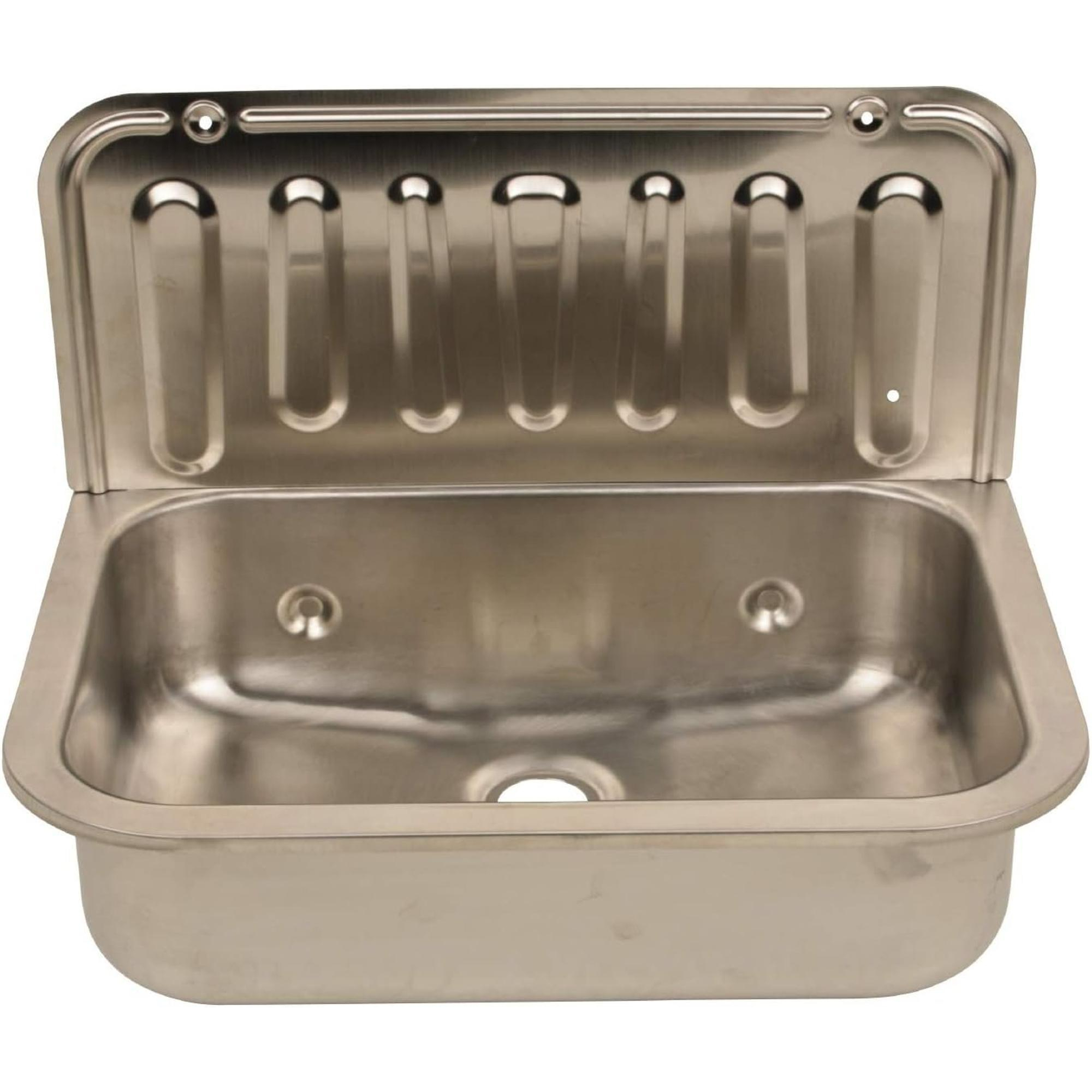 ?Een RVS uitstortgootsteen, ideaal voor de bijkeuken, schuur maar ook voor de garage. Even snel de handen wassen is vaak makkelijk als je bezig bent.