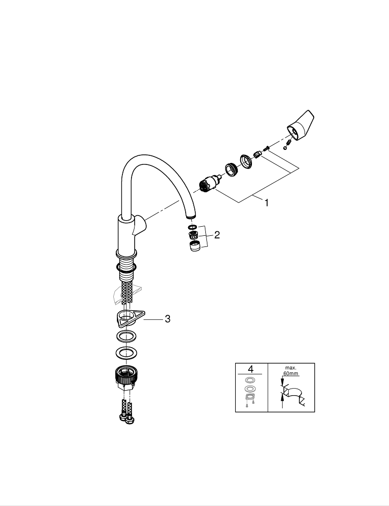 GROHE Zero interne kanalen, waardoor het water niet met de legering in contact komt