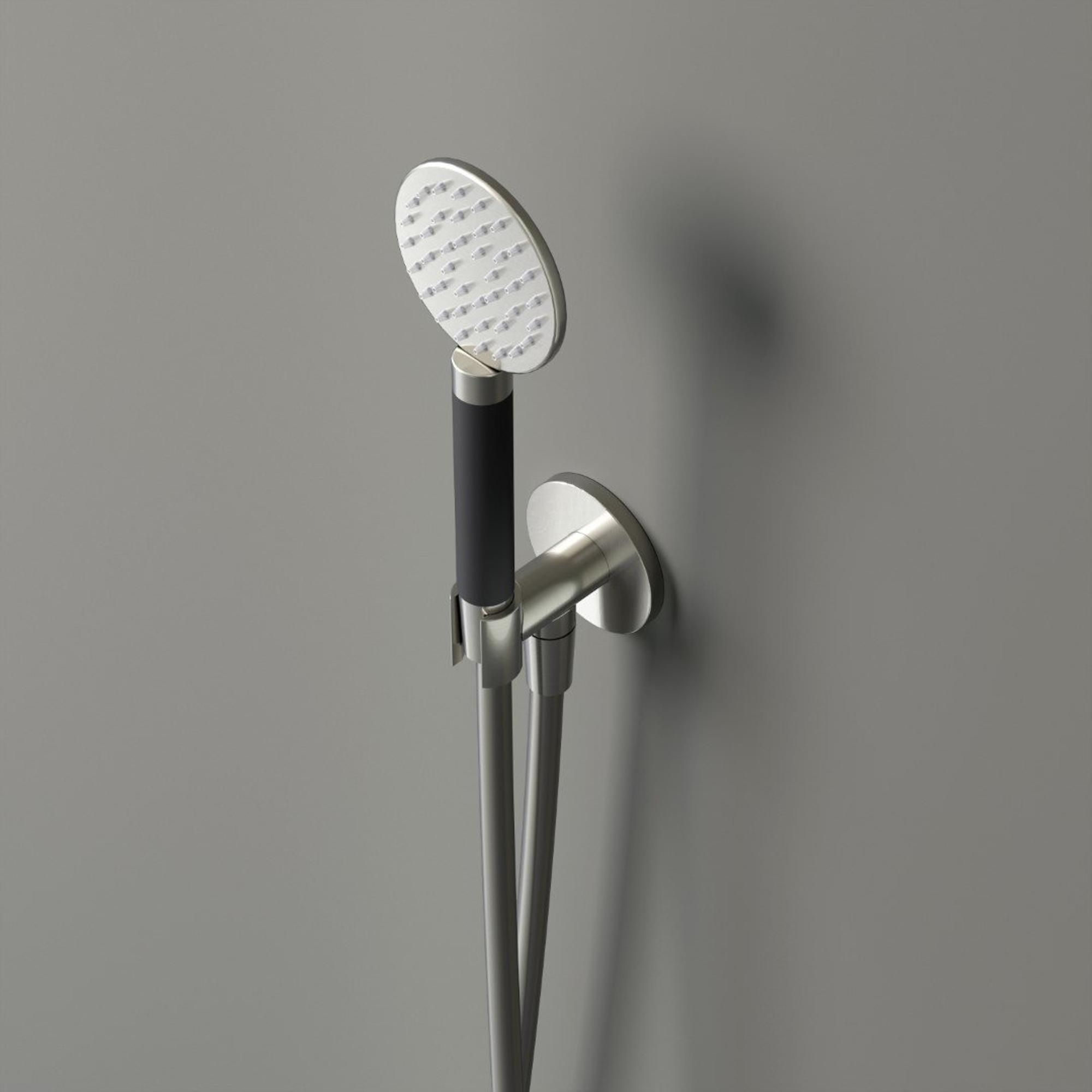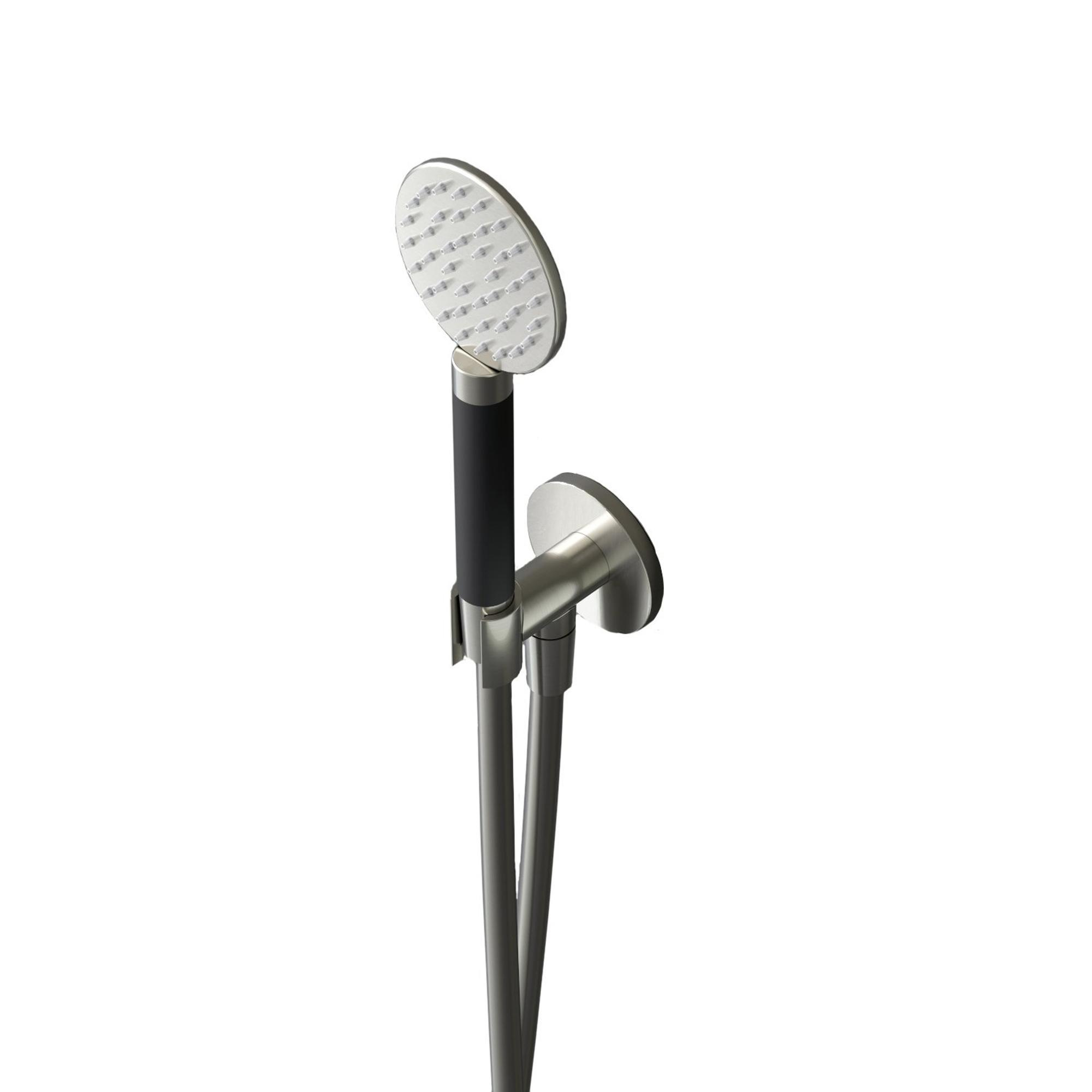 Hotbath Cobber M442 ronde handdouche met wandsteun en uitlaat en doucheslang 150cm nikkel geborsteld