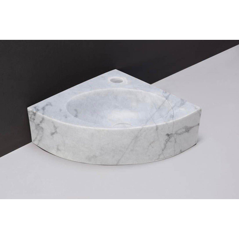 Forzalaqua Turino hoekftontein 30x30x10cm 1 kraangat zonder kraan natuursteen Carrara gepolijst