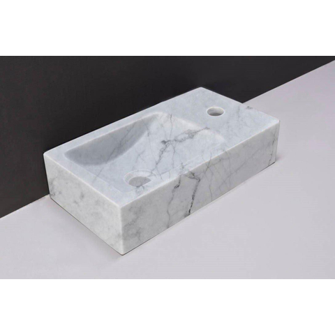 Forzalaqua Venetia fonteinbak 40x22x10cm wasbak links 1 kraangat rechts Natuursteen Carrara gepolijst