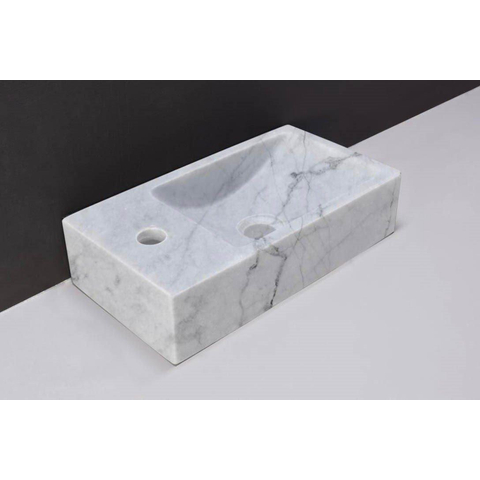 Forzalaqua Venetia fonteinbak 40x22x10cm wasbak rechts 1 kraangat links Natuursteen Carrara gepolijst