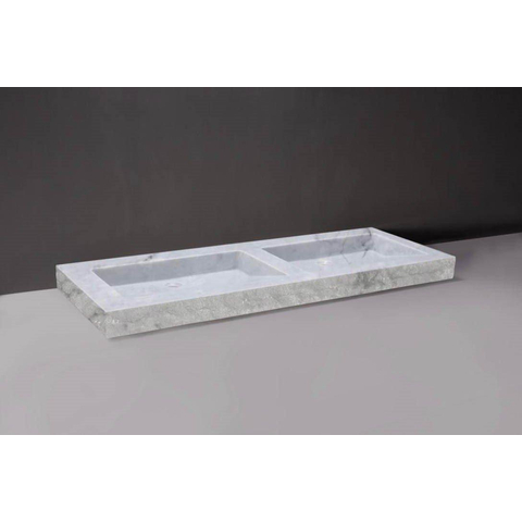 Forzalaqua Palermo Doppio wastafel 140.5x51.5x9cm Rechthoek 0 kraangaten 2 wasbakken Natuursteen Carrara gepolijst & gekapt