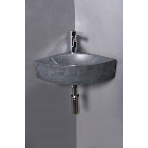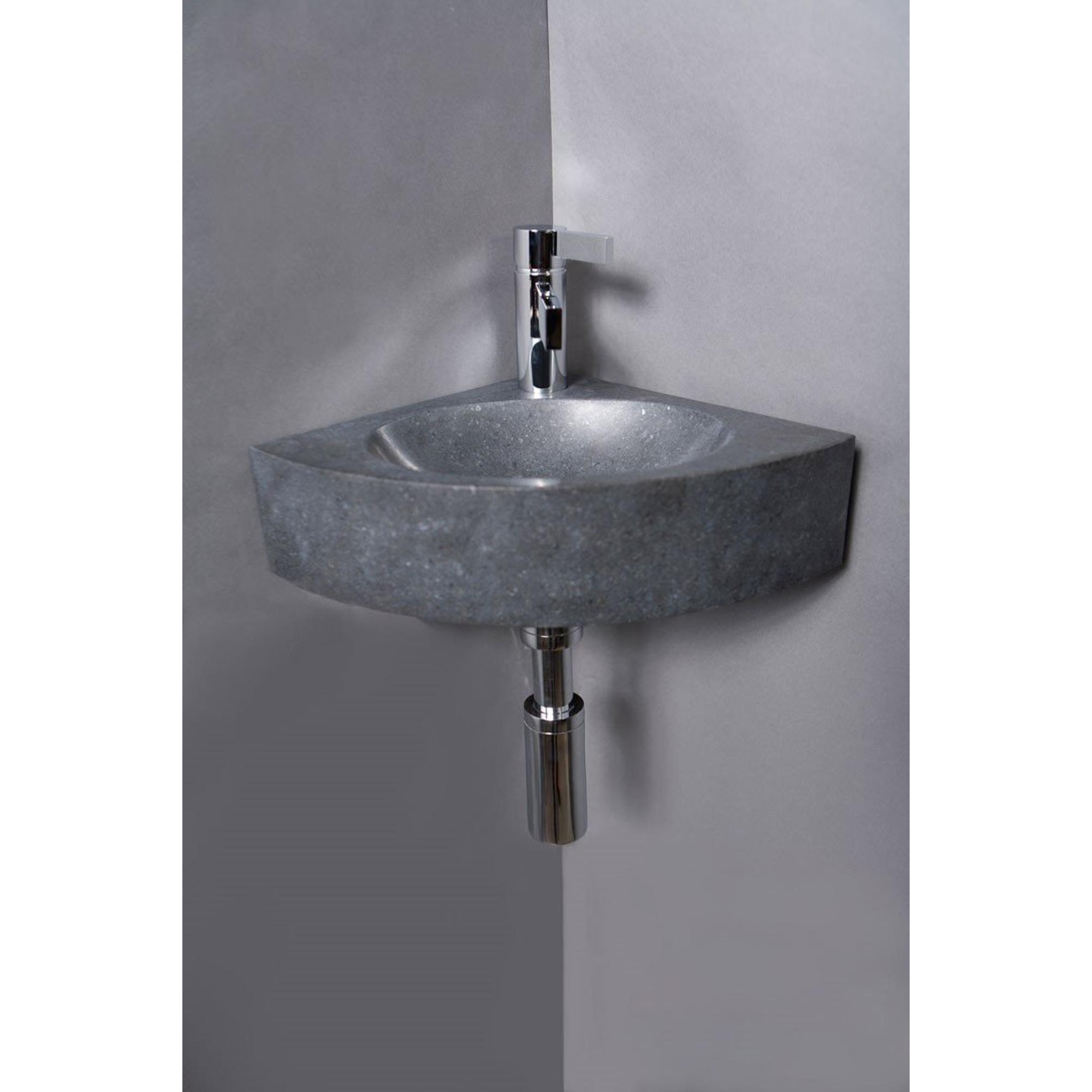 Forzalaqua Turino hoekftontein 30x30x10cm 1 kraangat zonder kraan natuursteen Graniet gezoet