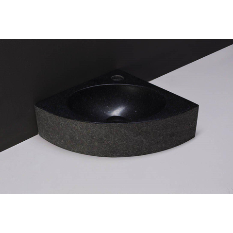Forzalaqua Turino hoekftontein 30x30x10cm 1 kraangat zonder kraan natuursteen Graniet gezoet & gebrand