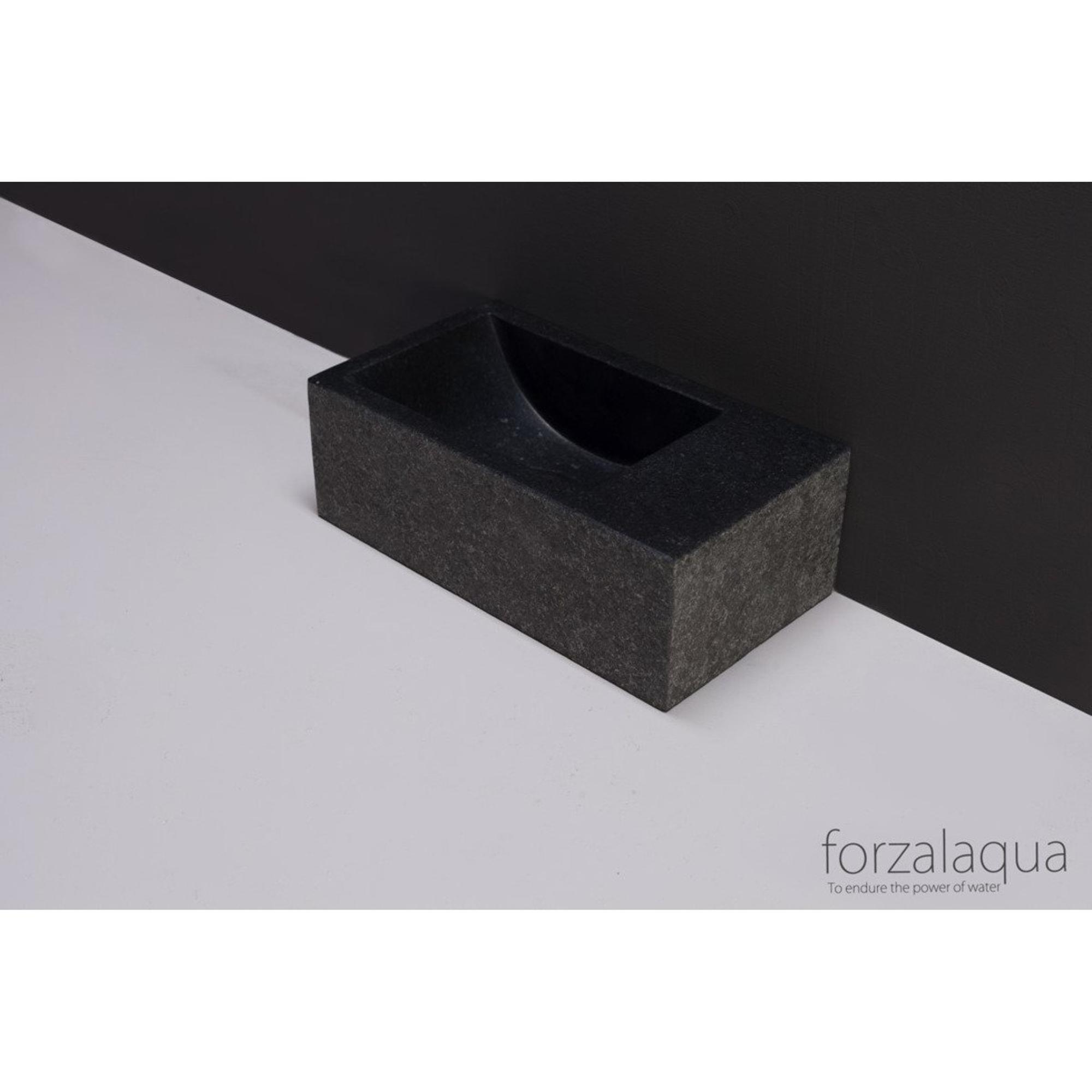 Forzalaqua Venetia Xs fonteinbak 29x16x10cm wasbak Links 0 kraangaten Natuursteen Graniet gezoet & gebrand