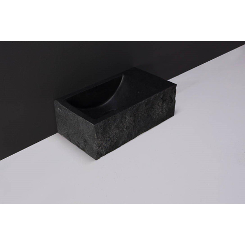 Forzalaqua Venetia Xs fonteinbak 29x16x10cm wasbak Links 0 kraangaten Natuursteen Graniet gezoet & gekapt