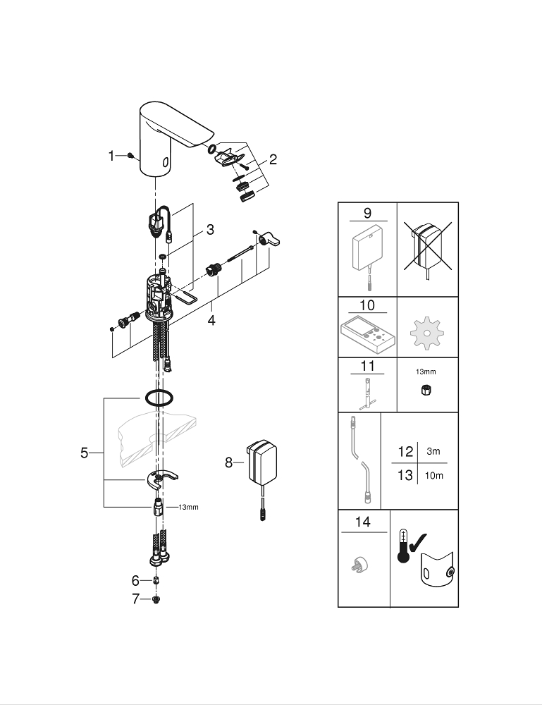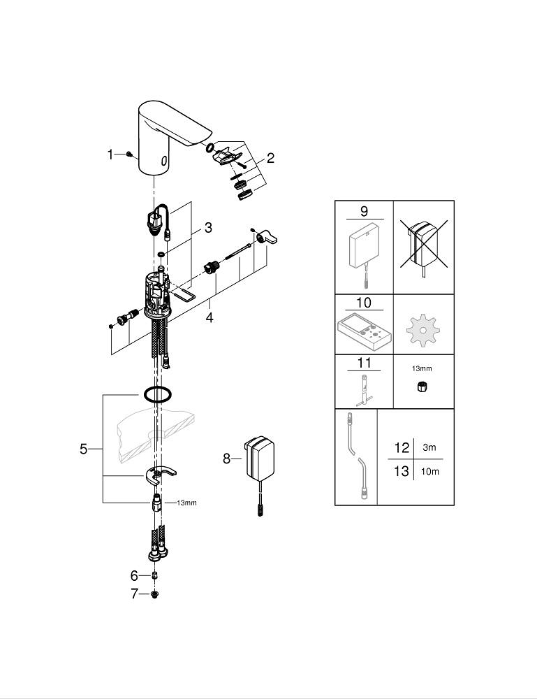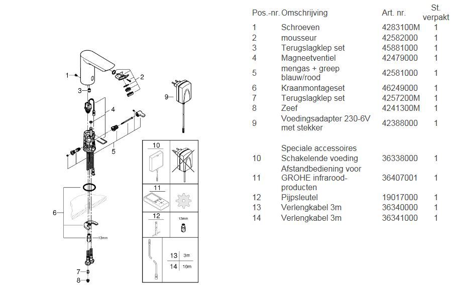 GROHE Bau Cosmopolitan waterbesparende elektronische wastafelkraan met infrarood m. menging 230V chroom