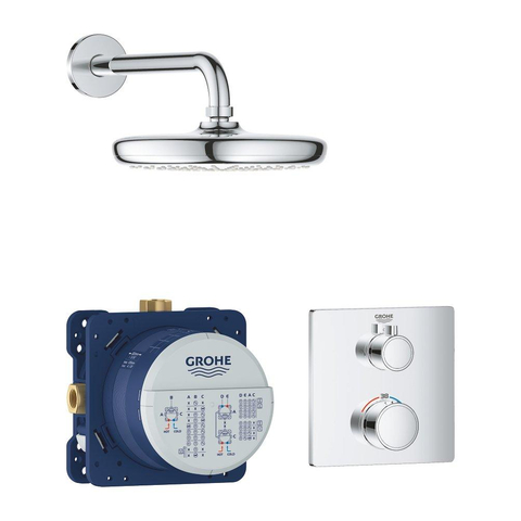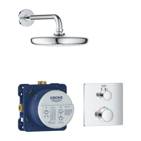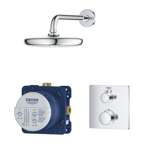 GROHE Grohtherm Perfect Regendoucheset - hoofdddouche 21cm - 1 functies - rechthoekig afbouwdeel - chroom