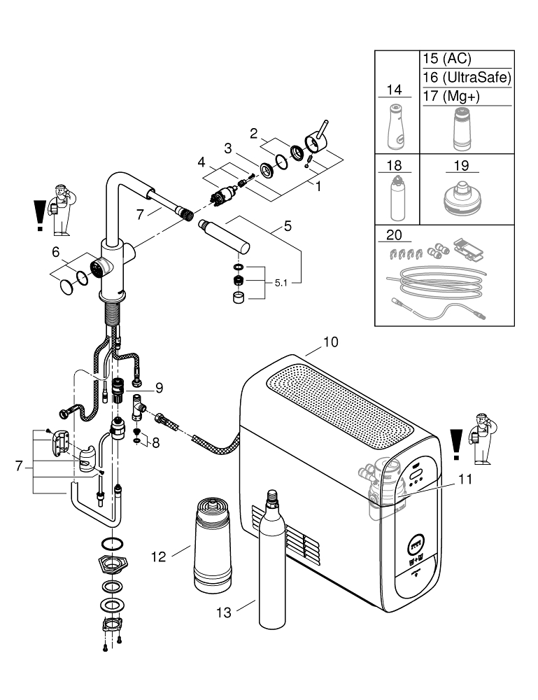 instelbaar voor GROHE Blue filter S-Size, M-Size, GROHE Blue actiefkoolfilter, GROHE Blue Ultrasafe filter en GROHE Blue magnesium+ filter