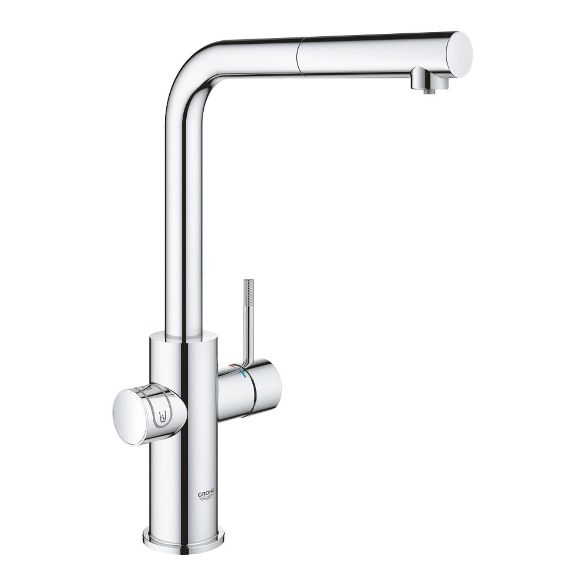GROHE Blue Home Keukenkraan - uittrekbare L uitloop - 1-gats - filterfunctie - plat licht en bruisend water - chroom