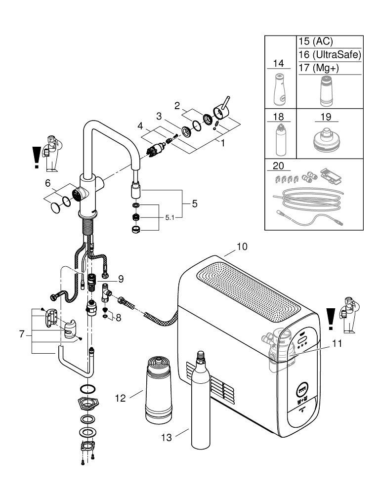 instelbaar voor GROHE Blue filter S-Size, M-Size, GROHE Blue actiefkoolfilter, GROHE Blue Ultrasafe filter en GROHE Blue magnesium+ filter