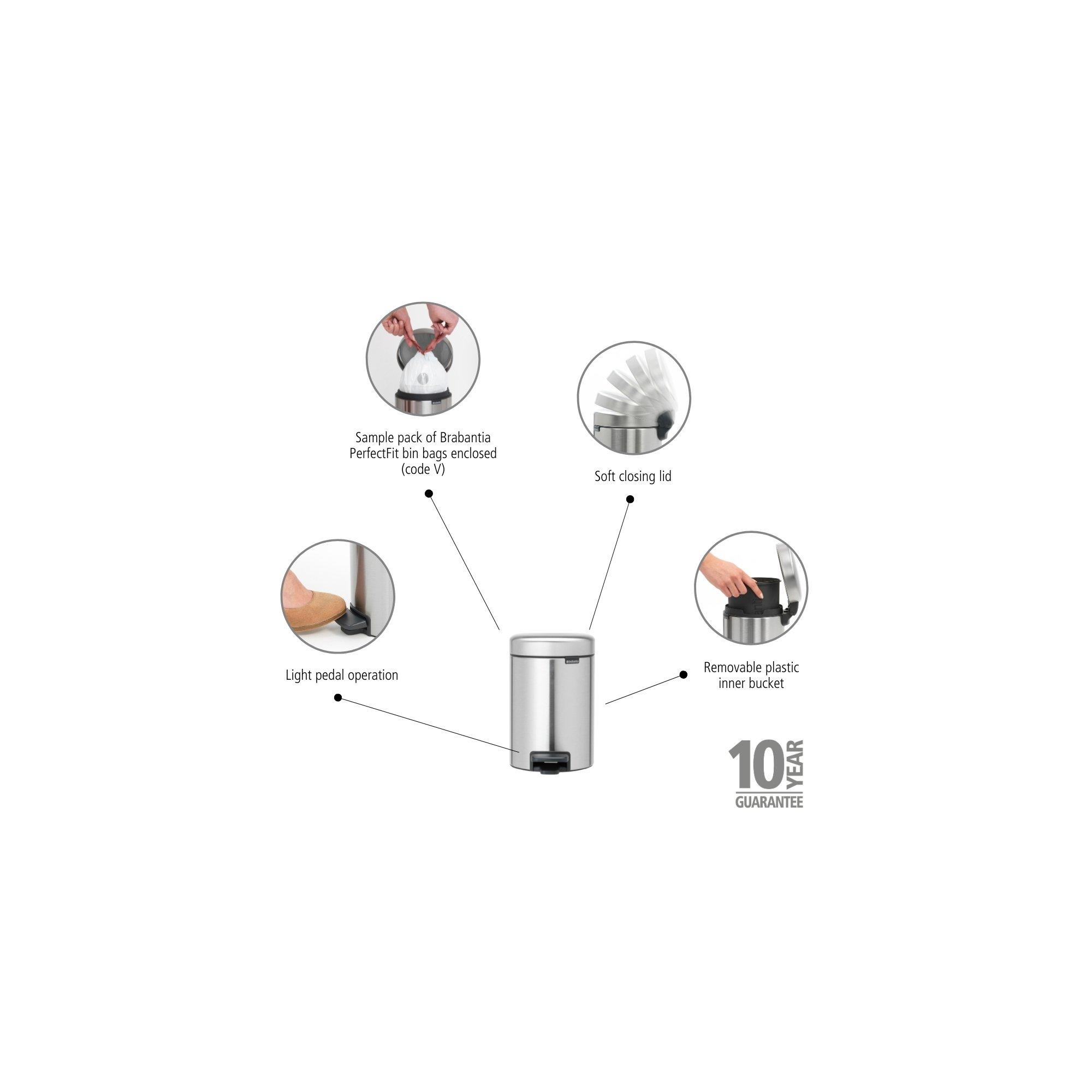 Met zijn handige pedaalmechanisme is de Brabantia NewIcon Pedaalemmer zeer praktisch in gebruik. Het pedaal opent de deksel soepel en geruisloos, waardoor je gemakkelijk afval kunt weggooien zonder de prullenbak aan te raken. De 3 liter inhoud is perfect voor kleine prullen en zorgt ervoor dat je de pedaalemmer niet constant hoeft te legen. Daarnaast is de kunststof binnenemmer eenvoudig uitneembaar en schoon te maken, waardoor het onderhoud van de pedaalemmer een fluitje van een cent is.
