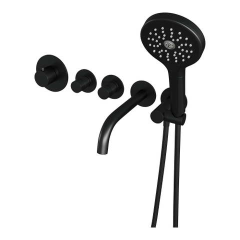 Brauer Black Edition Badkraan Inbouw - douchegarnituur - 20cm uitloop - inbouwdeel - 3 gladde knoppen - handdouche rond 3 standen - mat zwart