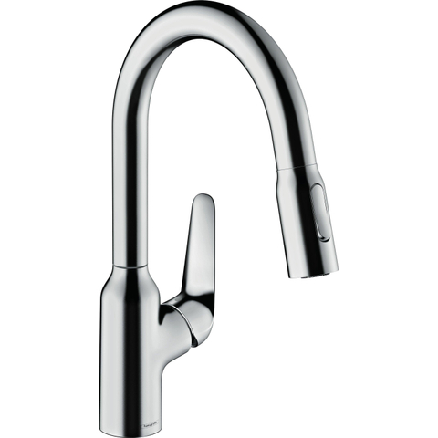 De hansgrohe Focus M42 ééngreeps keukenmengkraan 180 met uittrekbare vuistdouche, roestvrij stalen finish zorgt voor flexibiliteit bij het werken in de keuken. De praktische uitloophoogte van 180 mm maakt ruimte voor de dagelijkse keukenroutine en maakt een moeiteloze omgang met de keukenspullen mogelijk.