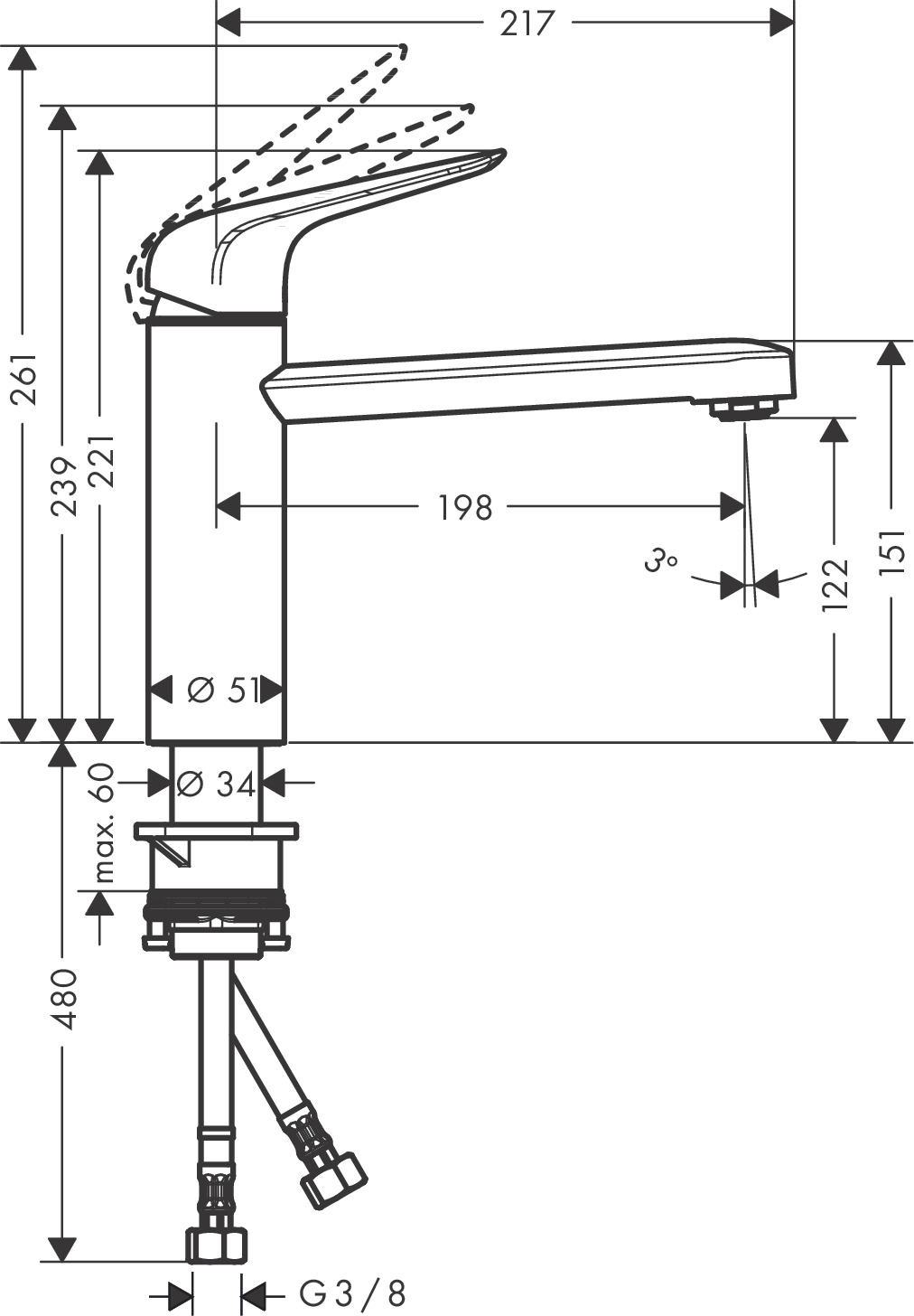 De hansgrohe Focus M4221-h220 ééngreeps keukenmengkraan CoolStart, chroom maakt efficiënt gebruik van de beschikbare ruimte en zorgt voor onbegrensd bedieningscomfort aan de gootsteen. De praktische uitloophoogte van 120 mm maakt plaats voor de dagelijks werkzaamheden en vereenvoudigt het werken met keukenspullen.