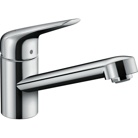De hansgrohe Focus M42 ééngreeps keukenmengkraan 100 CoolStart, chroom maakt met een praktische uitloophoogte van 100 mm plaats voor het dagelijkse werk aan de gootsteen. De compacte vorm is ergonomisch ontworpen voor de gebruikelijke keukenroutine.