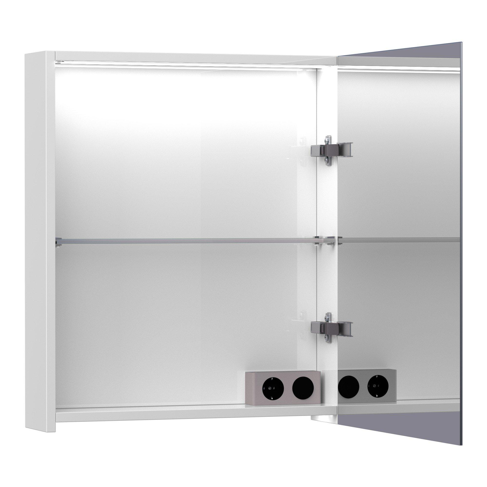 BRAUER Impress Deluxe spiegelkast - 60x70x15cm - interne en externe verlichting - 1 rechtsdraaiende dubbelzijdige spiegeldeur hoogglans wit