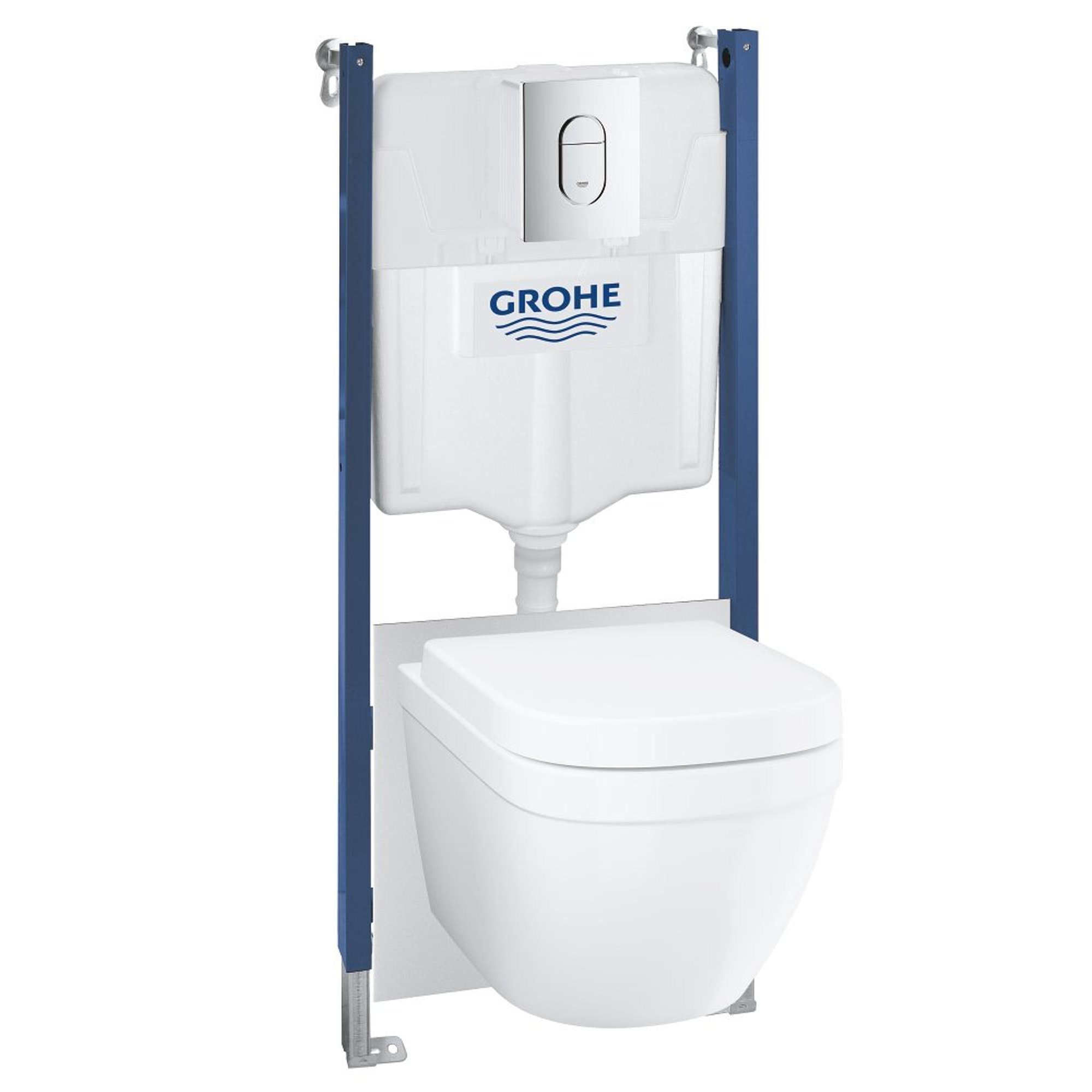 GROHE Euro Ceramic toiletset - Solido inbouwreservoir - spoelrandloos - softclose zitting - bedieningsplaat chroom - glans wit