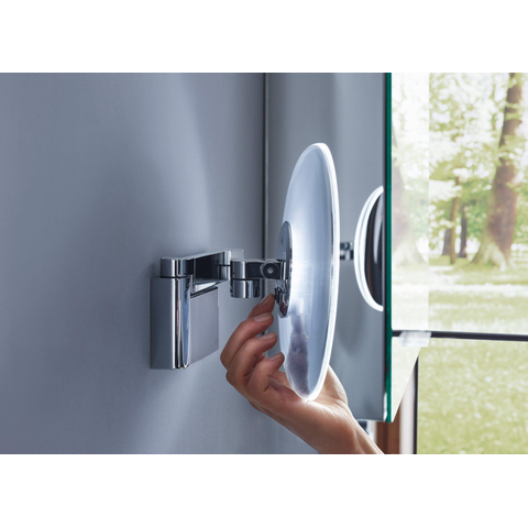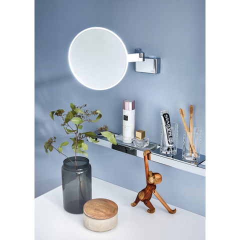 Emco Evo scheer- en cosmeticaspiegel rond 2 schakelaars lichtsterkte en kleur rond 20cm wandmodel 2-armig 5x vergrotend chroom
