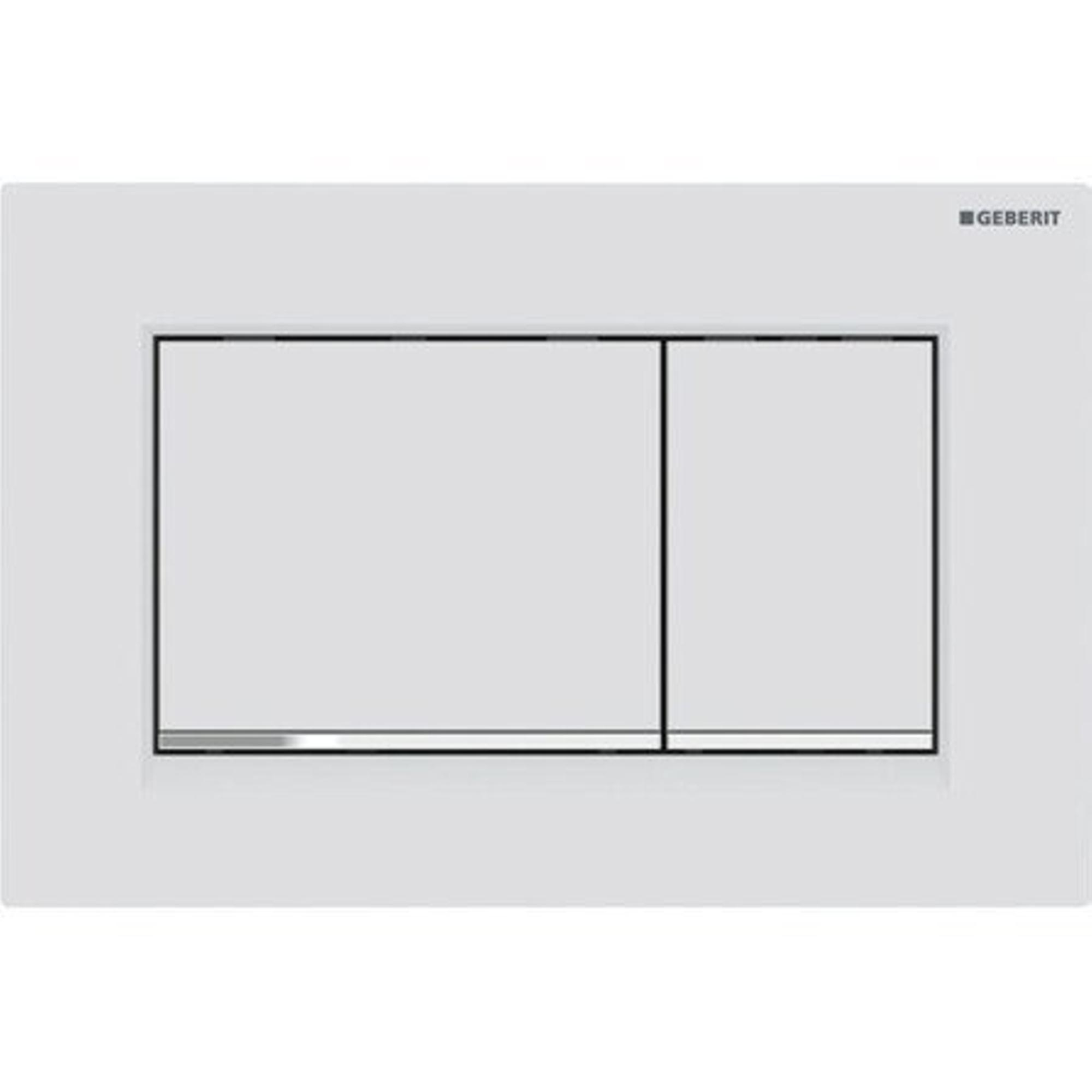 Bekijk een variant in Alkmaar, Amsterdam West, Arnhem, Breda, Eindhoven, Heerlen, Middelburg, Rosmalen, Tilburg, Uden, WateringenGeberit Sigma20 bedieningplaat, 2-toets spoeling frontbediening voor toilet 24.6x16.4cm wit mat met glansverchroomde strook