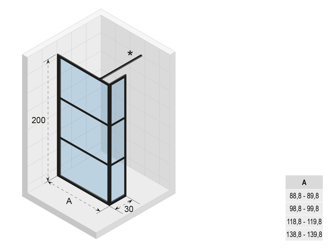 Riho Grid L Douchewand - 200x140x30cm - zwart