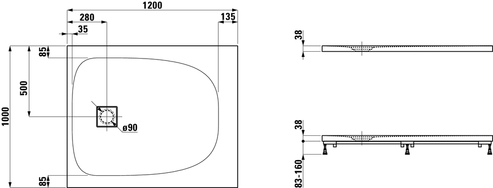 Laufen Solutions douchebak 120x100x3.8cm rechthoek Marbond wit