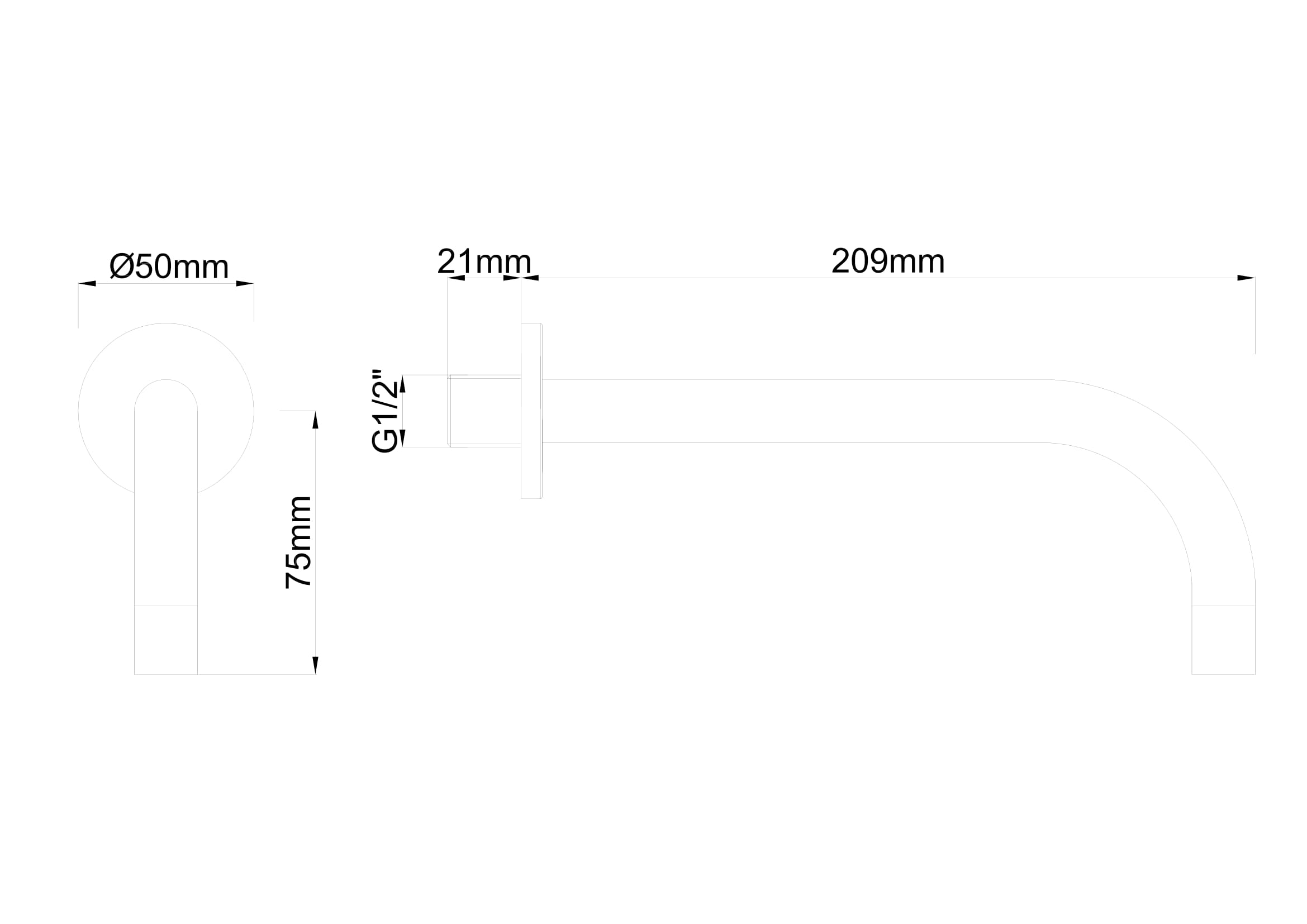 Wiesbaden SLIM 18mm uitloop rond 20cm 1/2" mat zwart