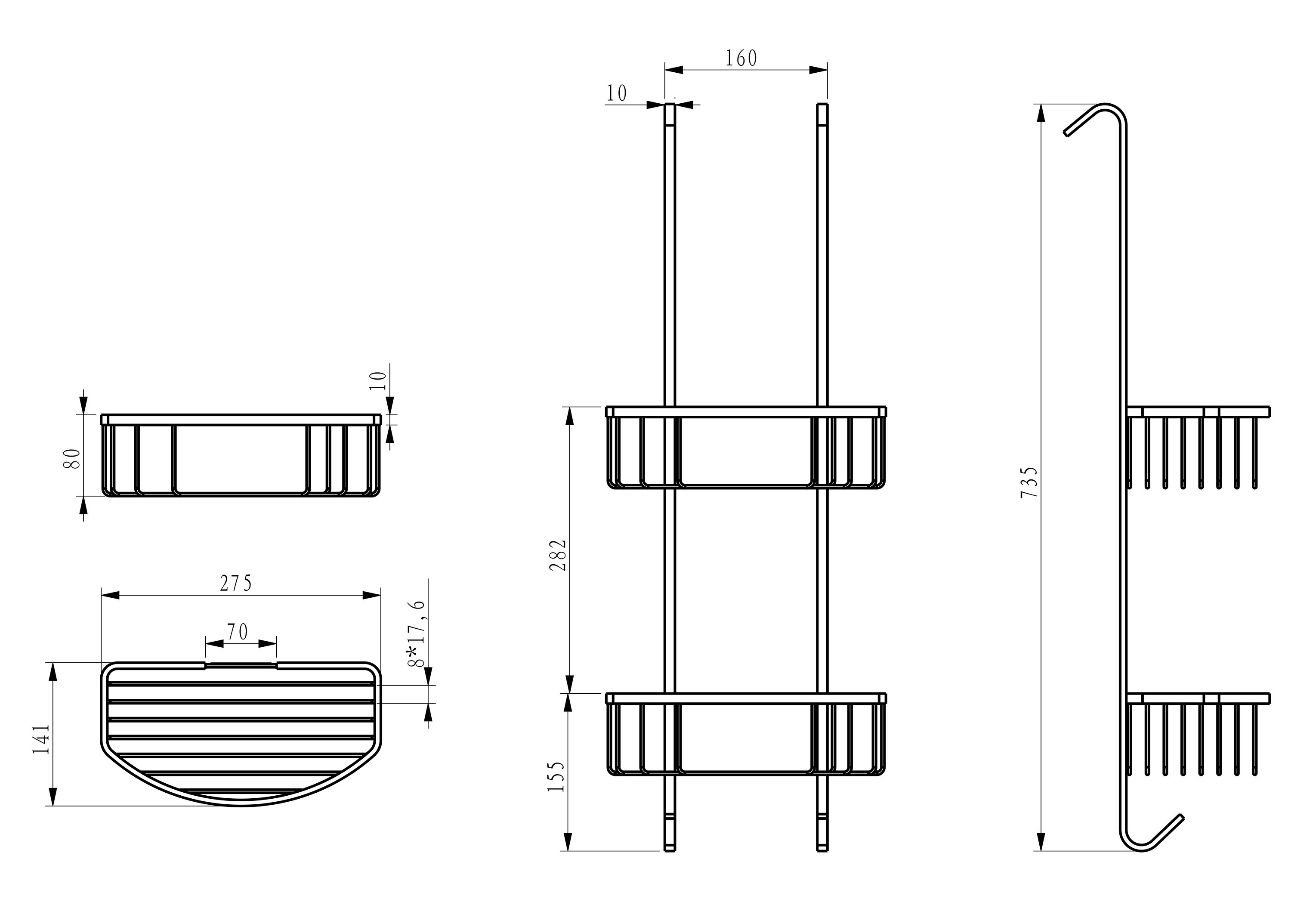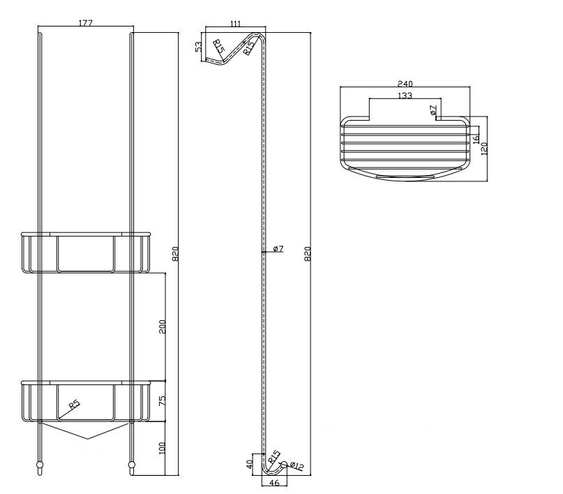 2 beschermde ophanghaken, geschikt voor de douchewand
