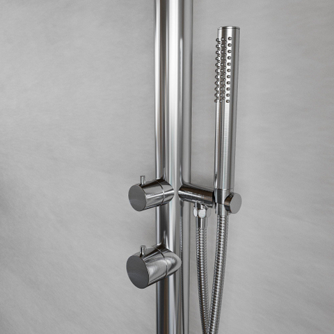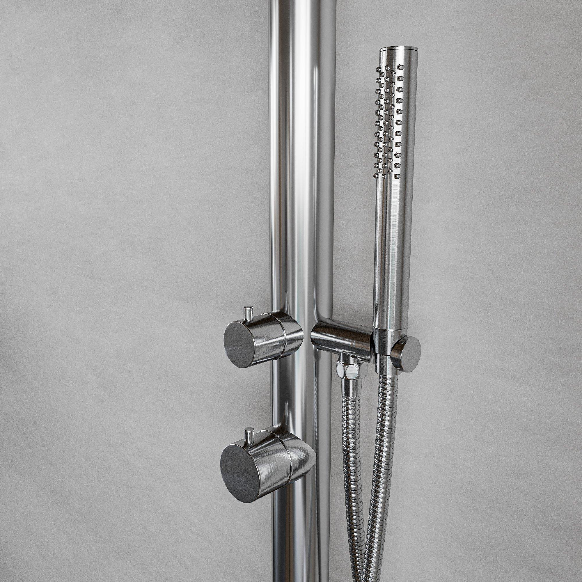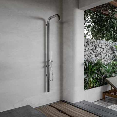 Naast zijn elegante uitstraling en duurzame constructie biedt de handdouche van deze buitendouche ook optimaal comfort. De ergonomisch ontworpen handdouche ligt prettig in de hand en zorgt voor een aangename douche-ervaring. Stel de waterstraal in naar jouw voorkeur en geniet van een verfrissende douche in de buitenlucht.
