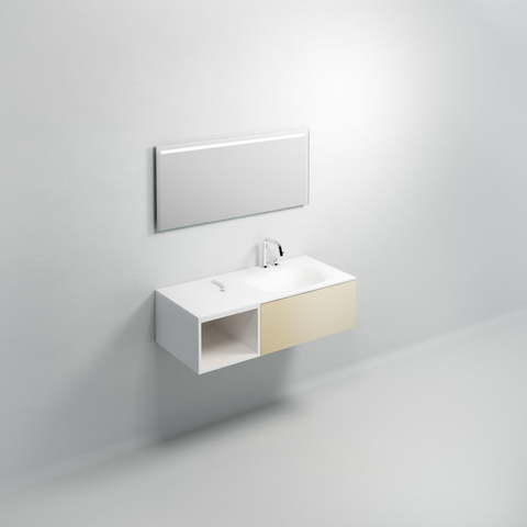 AluiteHet wastafelblad is gemaakt van aluite. Aluite is een composietmateriaal met een soft-touch effect. Het bestaat voor een groot deel uit natuurlijke mineralen, aangevuld met een klein percentage van polyeser- en acrylpolymeren. Het materiaal is van hoge kwaliteit en is makkelijk schoon te maken met milde schoonmaakproducten. Schuursponsjes, schuurmiddelen of chemische schoonmaakproducten zijn niet geschikt om het wastafelblad mee schoon te maken. Deze producten beschadigen het materiaal!