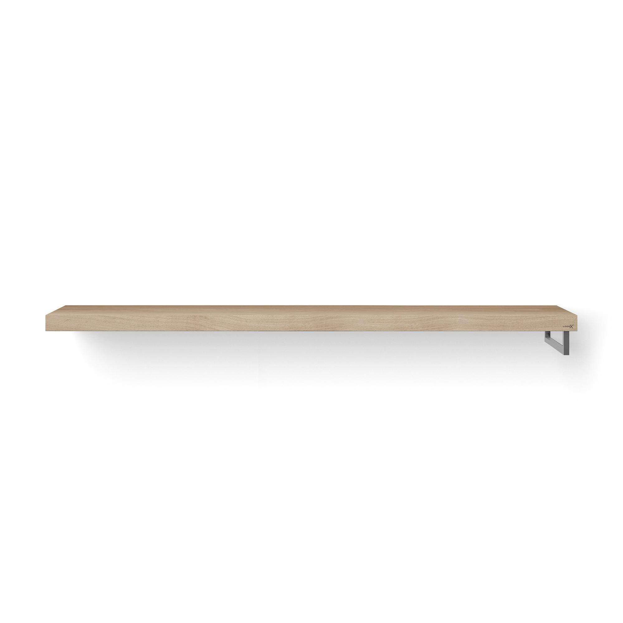 Looox Wood collection Solo wastafelblad - 200x46cm - Met handdoekhouder (rechts) RVS geborsteld - Massief eiken Old grey
