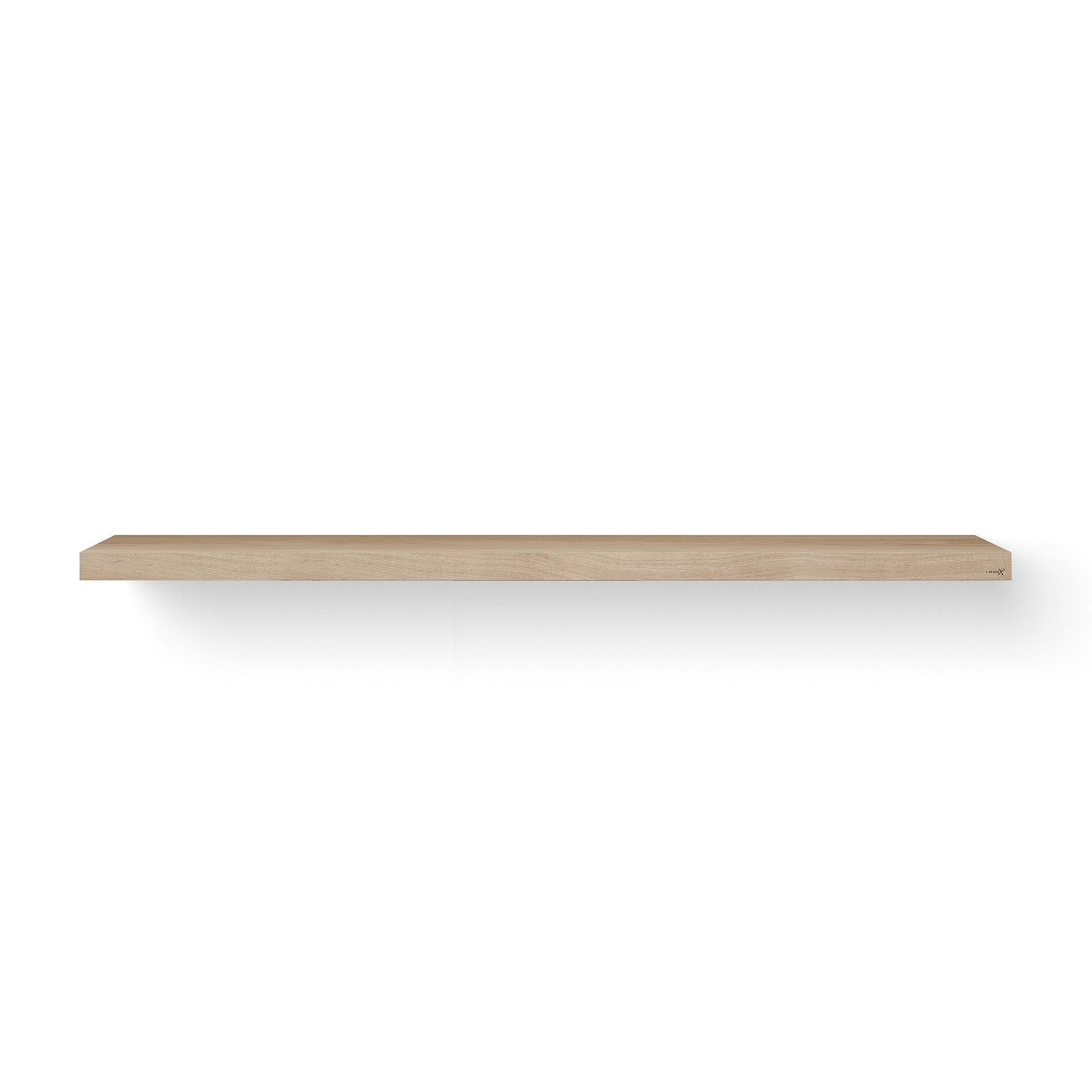 Looox Wood collection Solo wastafelblad - 200x46cm - Met ophanging RVS geborsteld - Massief eiken Old grey